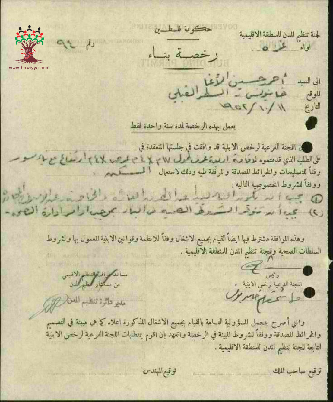 طلب رخصة بناء ل أحمد حسين الآغا-خان يونس