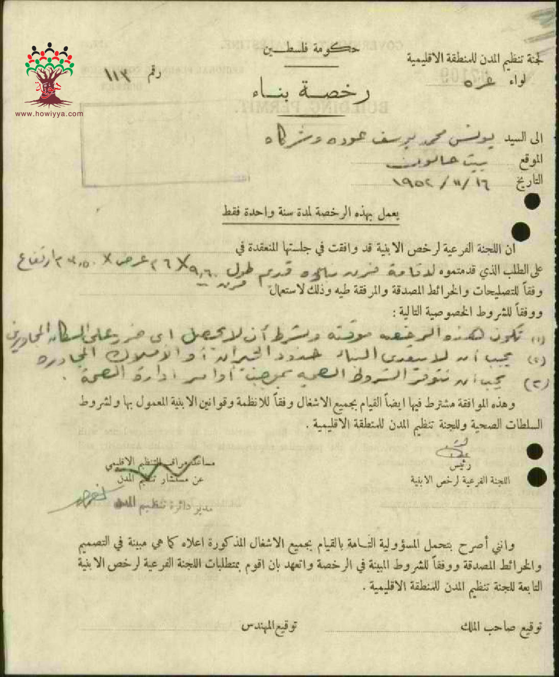 طلب رخصة بناء ل يونس محمد يوسف عودة وشركاه-بيت حانون