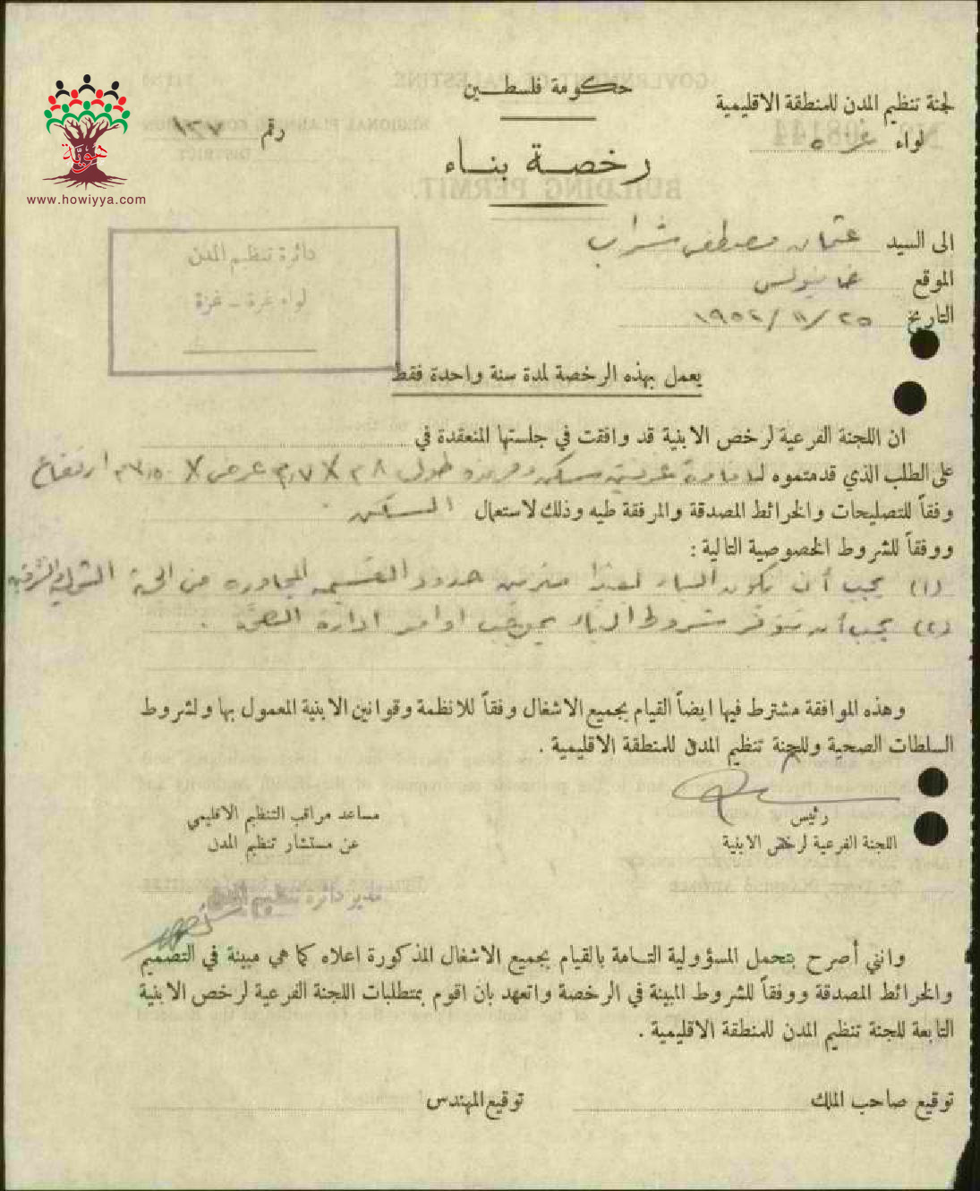 طلب رخصة بناء ل عثمان مصطفى شراب -خان يونس