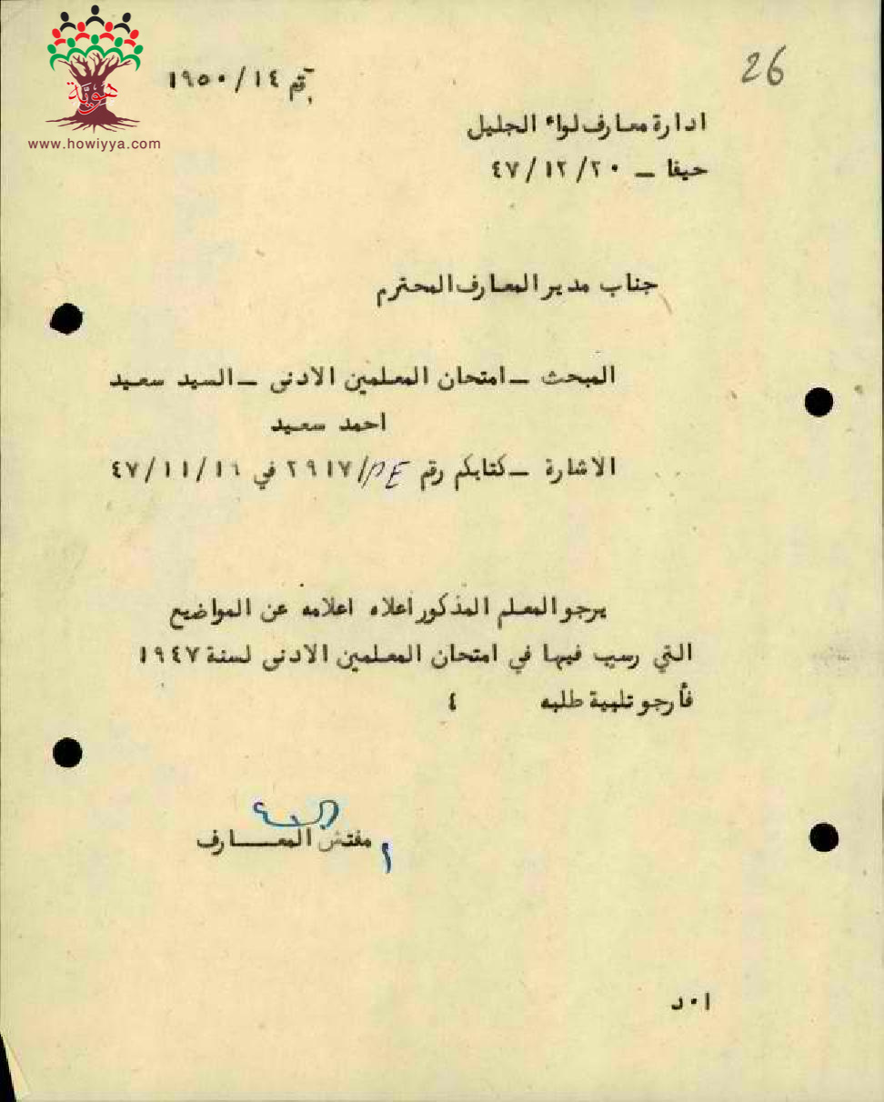 مجموعة رسائل بخصوص عدم نجاح المعلم سعيد أحمد سعيد في امتحان المعلمين الأدنى
