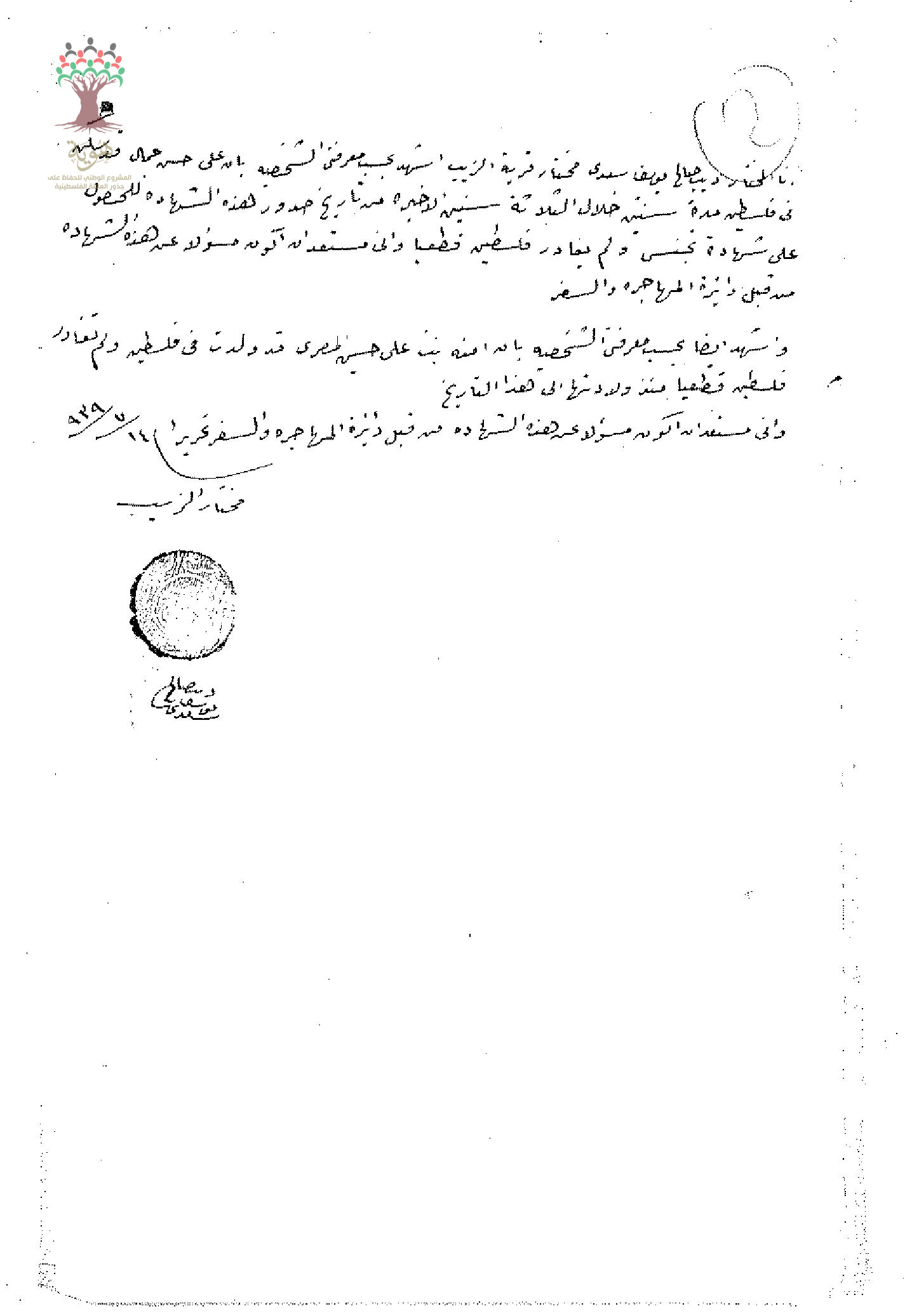 شهادة من المختار للسيد علي حسن الجمال بخصوص طلب الجنسية/الزيب