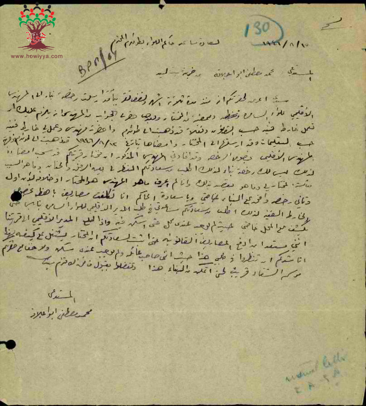 مجموعة رسائل بخصوص سحب مختار خربة بيت ليد امضائه عن خريطة بناء محمد مصطفى زحلاقة