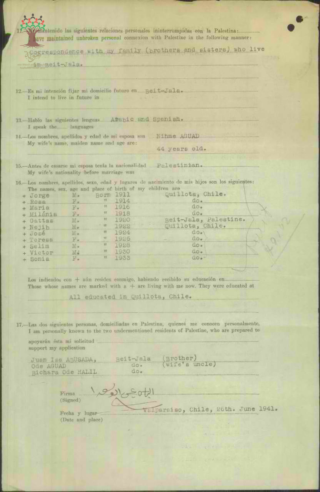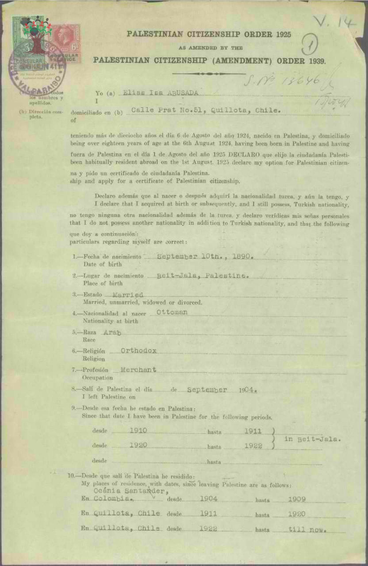 طلب الجنسية الفلسطينية-إلياس عيسى أبو سعدة-بيت جالا/تشيلي