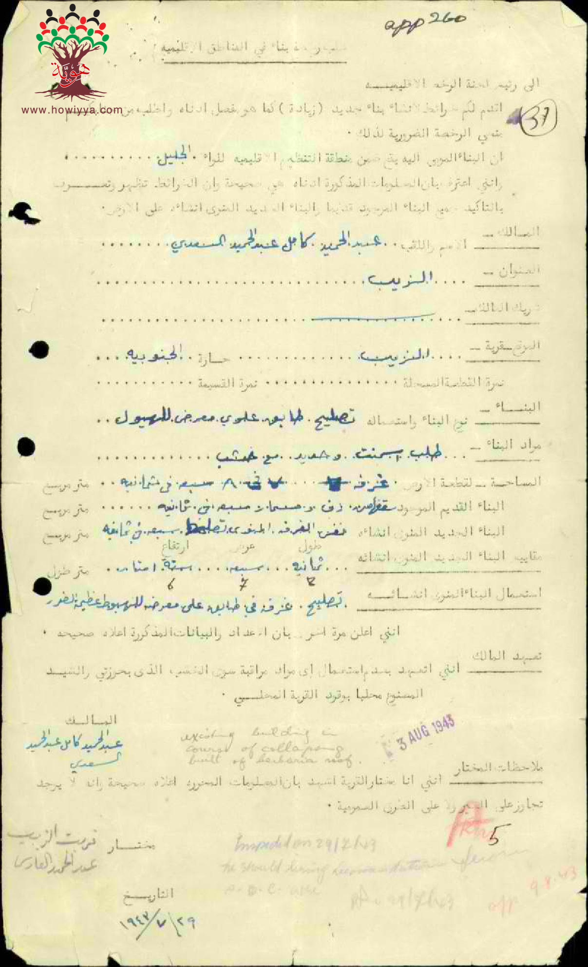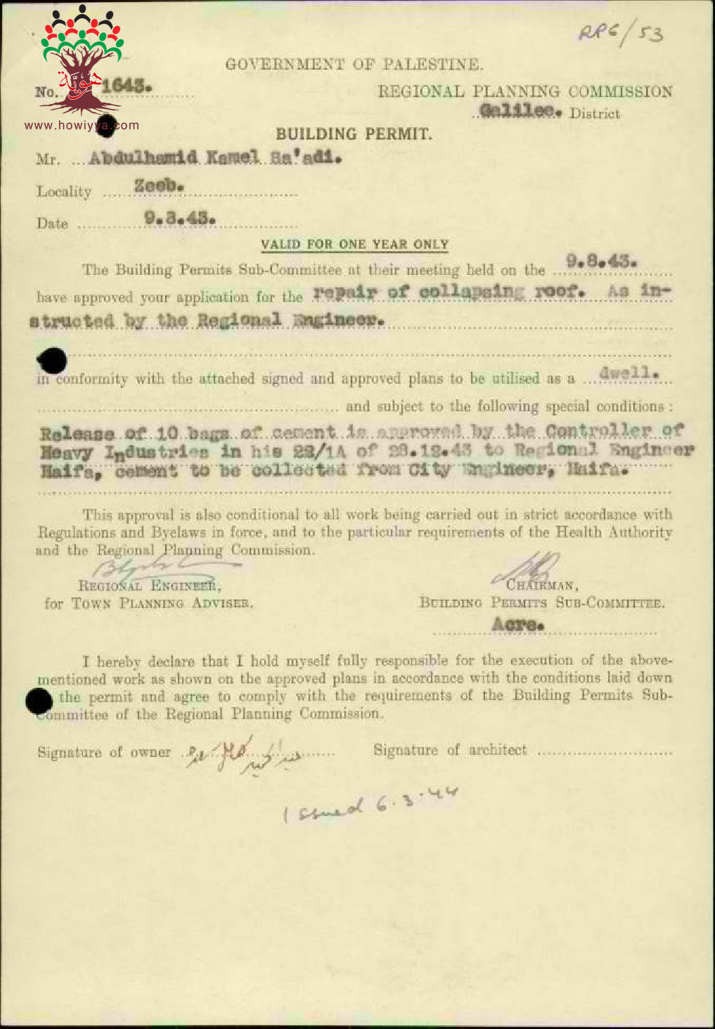 طلب رخصة بناء ل عبد الرحمن كامل السعدي-الزيب
