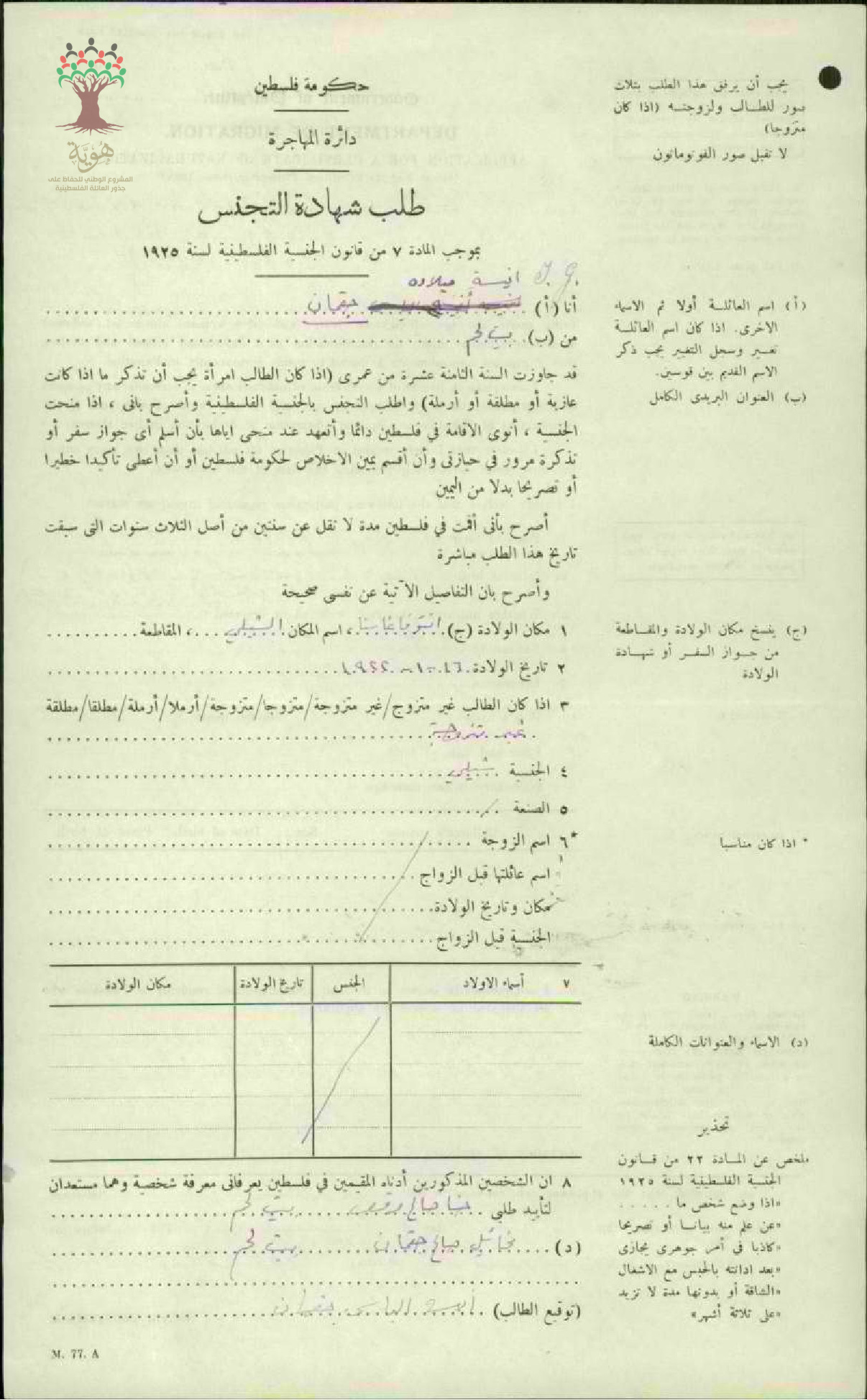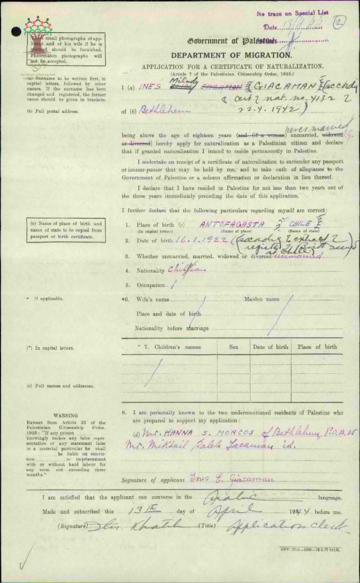 طلب الجنسية الفلسطينية-أنيسة إلياس سعيد جقمان-بيت لحم/تشيلي