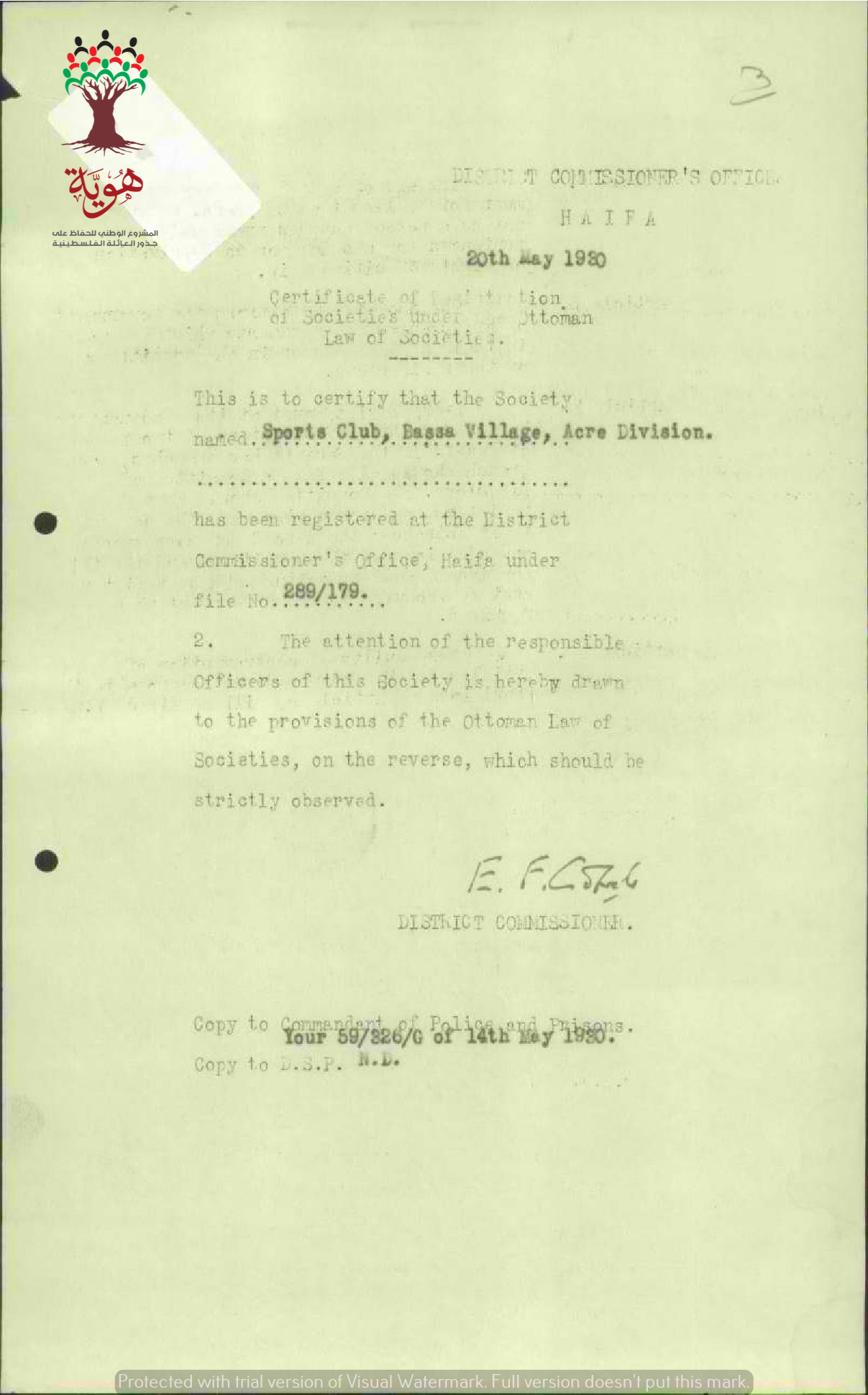 شهادة تسجيل النادي الرياضي في البصة