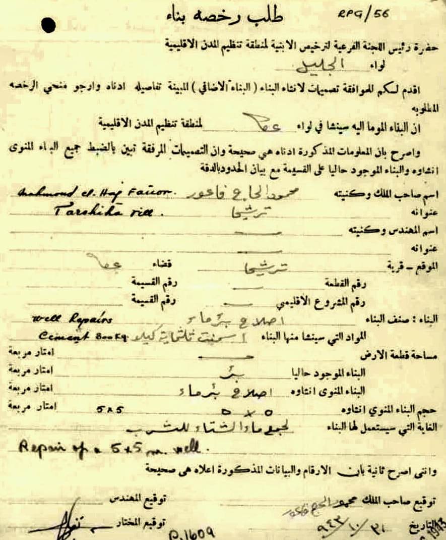 طلب رخصة بناء ل محمود الحلج فاعور-ترشيحا
