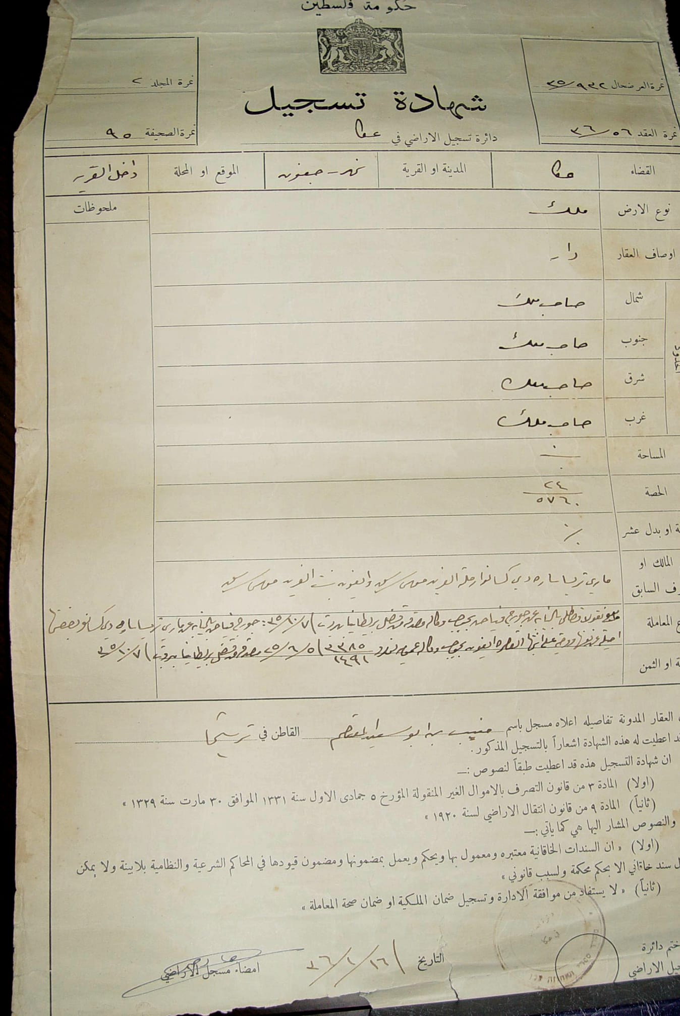 شهادة تسجيل عقار بإسم منيب أبو سعيد معتصم-ترشيحا