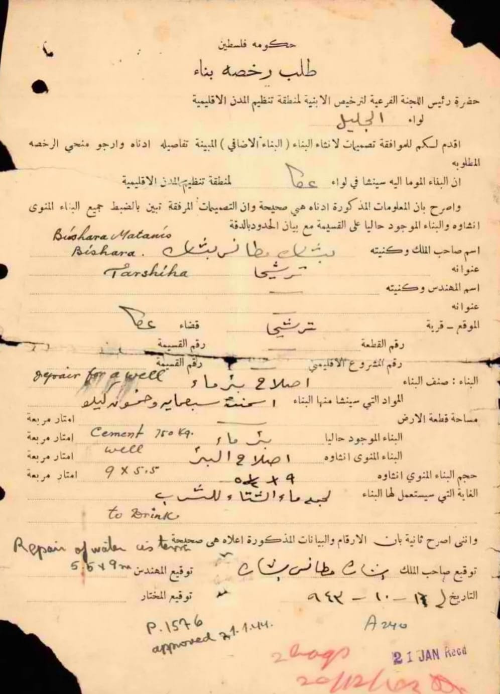 طلب رخصة بناء ل بشارة مطانس بشارة-ترشيحا