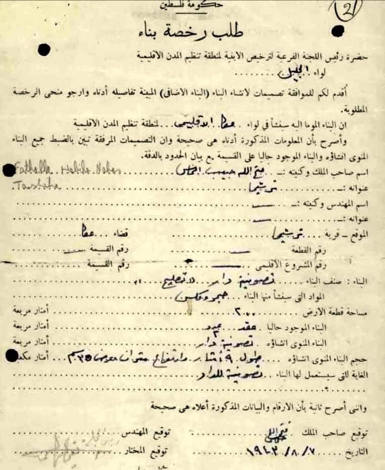 طلب رخصة بناء ل فتح الله حبيب النحاس-ترشيحا
