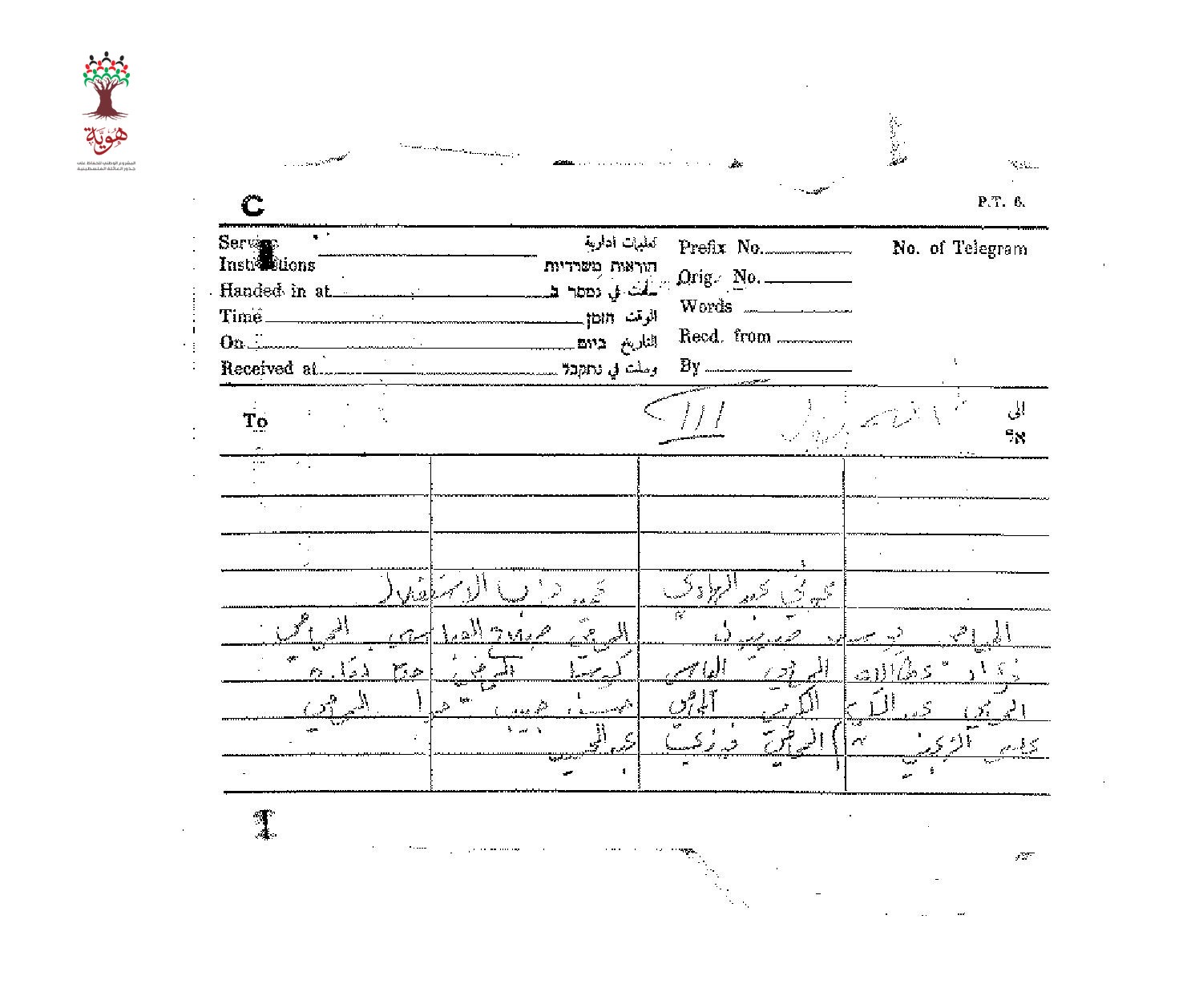 تلغراف مرسل من أهالي حيفا الى المندوب السامي احتجاجا على وعد بلفور مطالبين بإلغائه لظلمه بحق العرب.