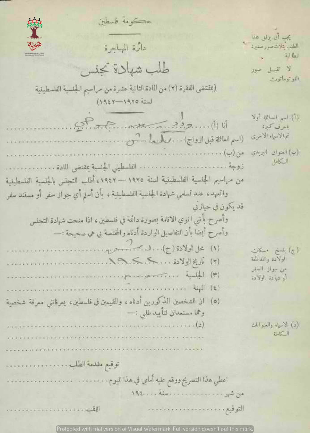 طلب الجنسية الفلسطينية-وداد جوخي-يافا/سوريا