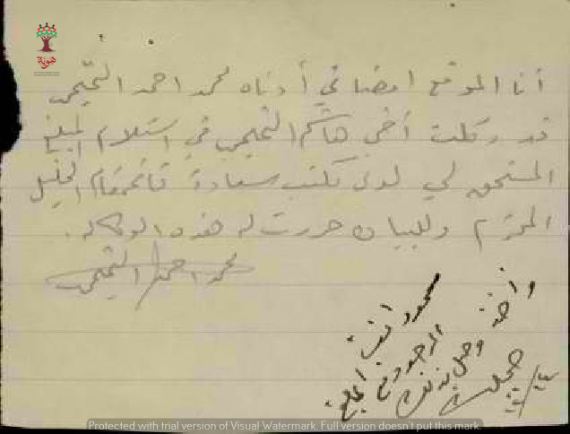 توكيل من محمد أحمد التميمي لأخيه هاشم التميمي باستلام مبلغ الإعفاء الضريبي