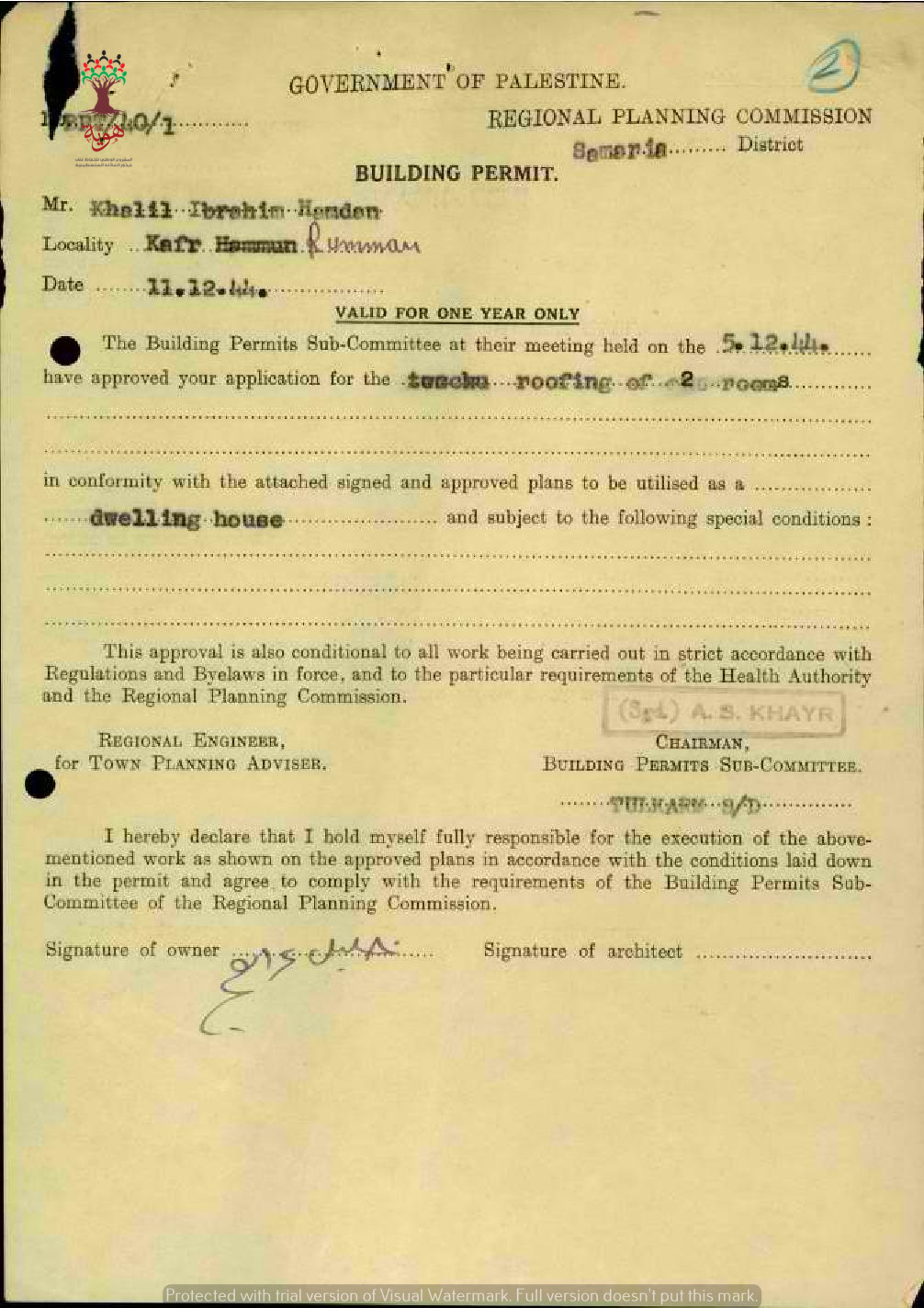 رخصة بناء صالحة لمدة سنة ل خليل غبراهيم حمدان-كفر رمان
