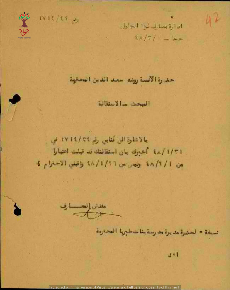مجموعة رسائل بخصوص قبول استقالة المعلمة روضة سعد الدين