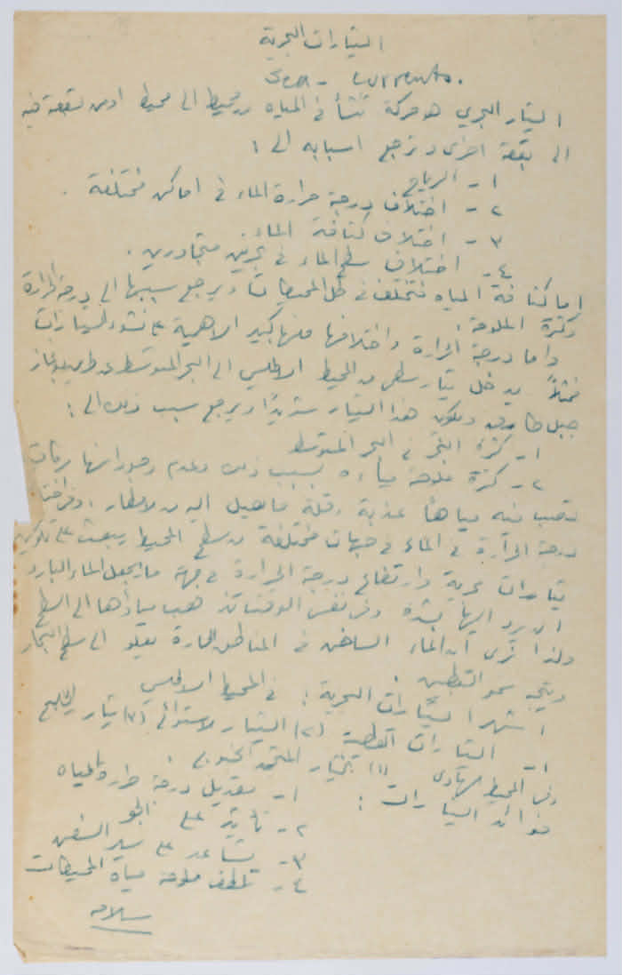 ملخص مادة لأحد طلاب الكلية العربية في القدس، 1920-30