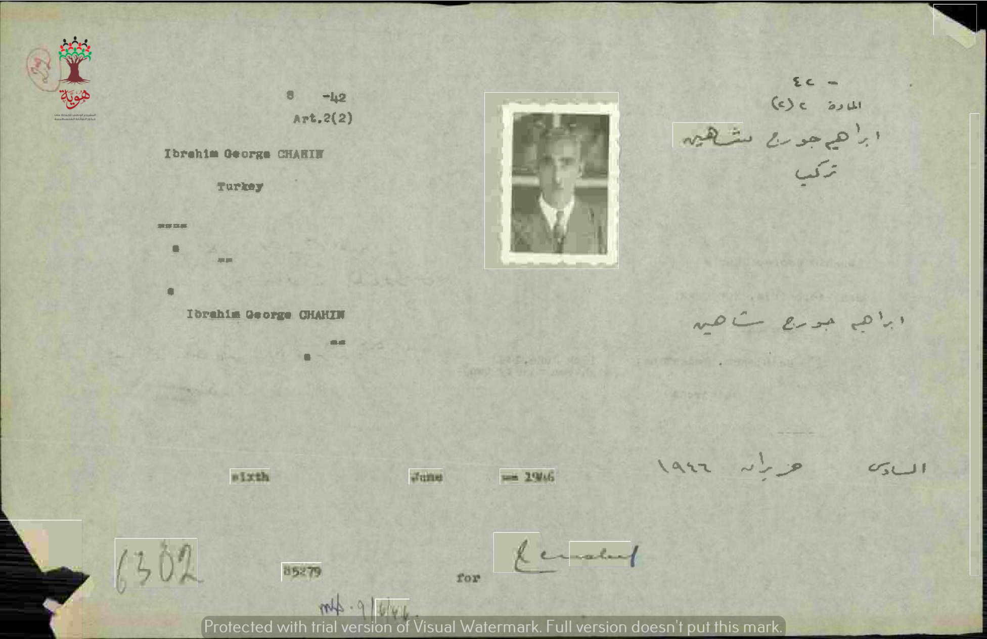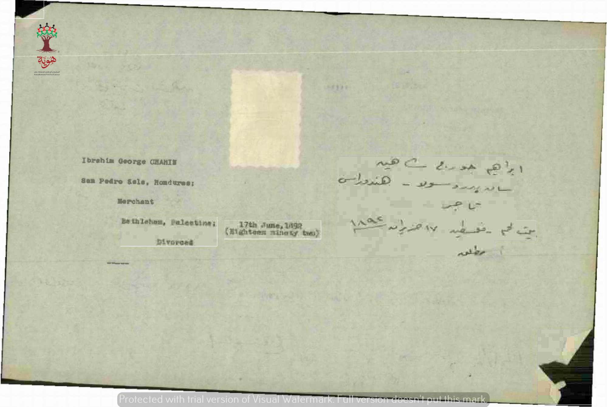 ورقة بيانات إبراهيم جورج شاهين المرفقة بطلب الجنسية