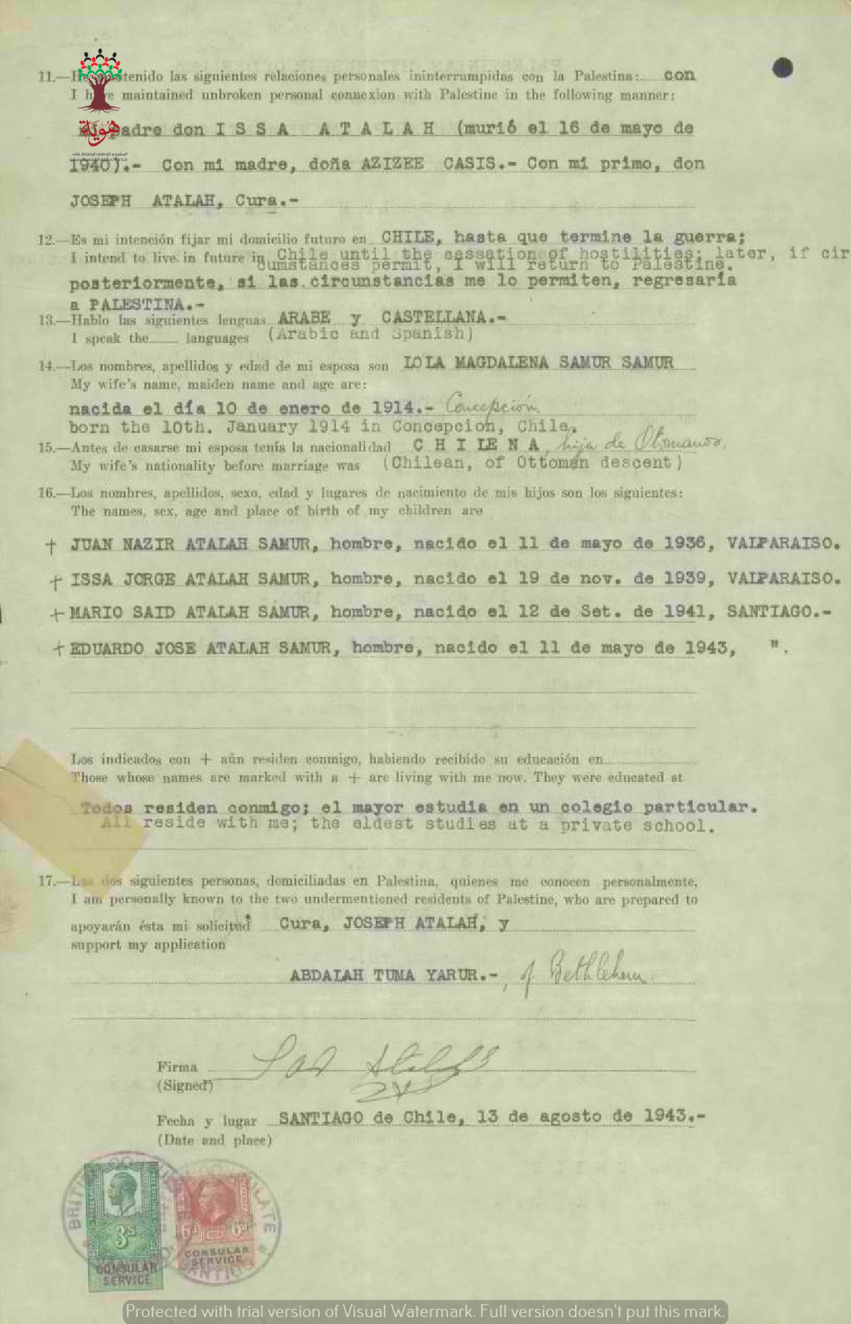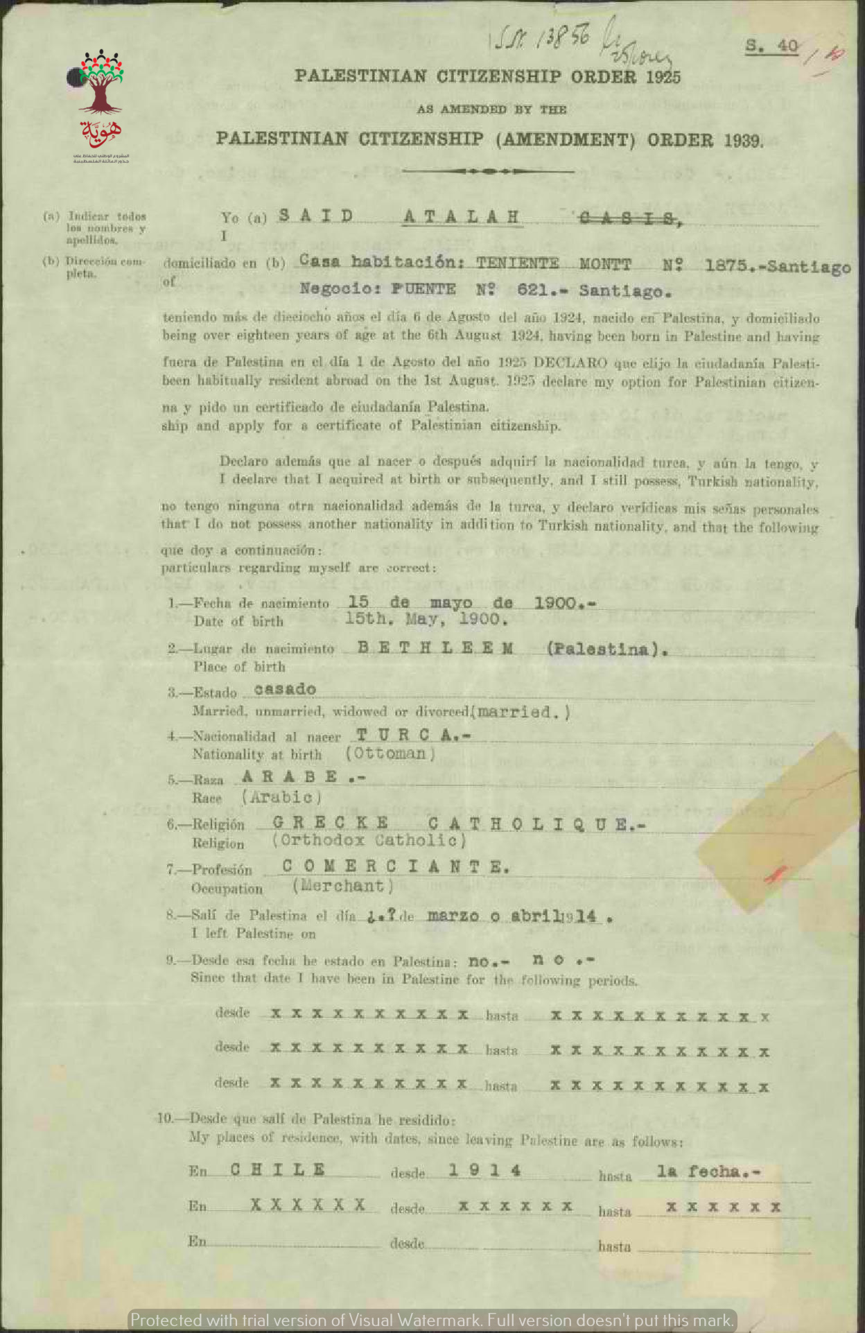 طلب الجنسية الفلسطينية-سعيد عطا الله-بيت لحم/تشيلي