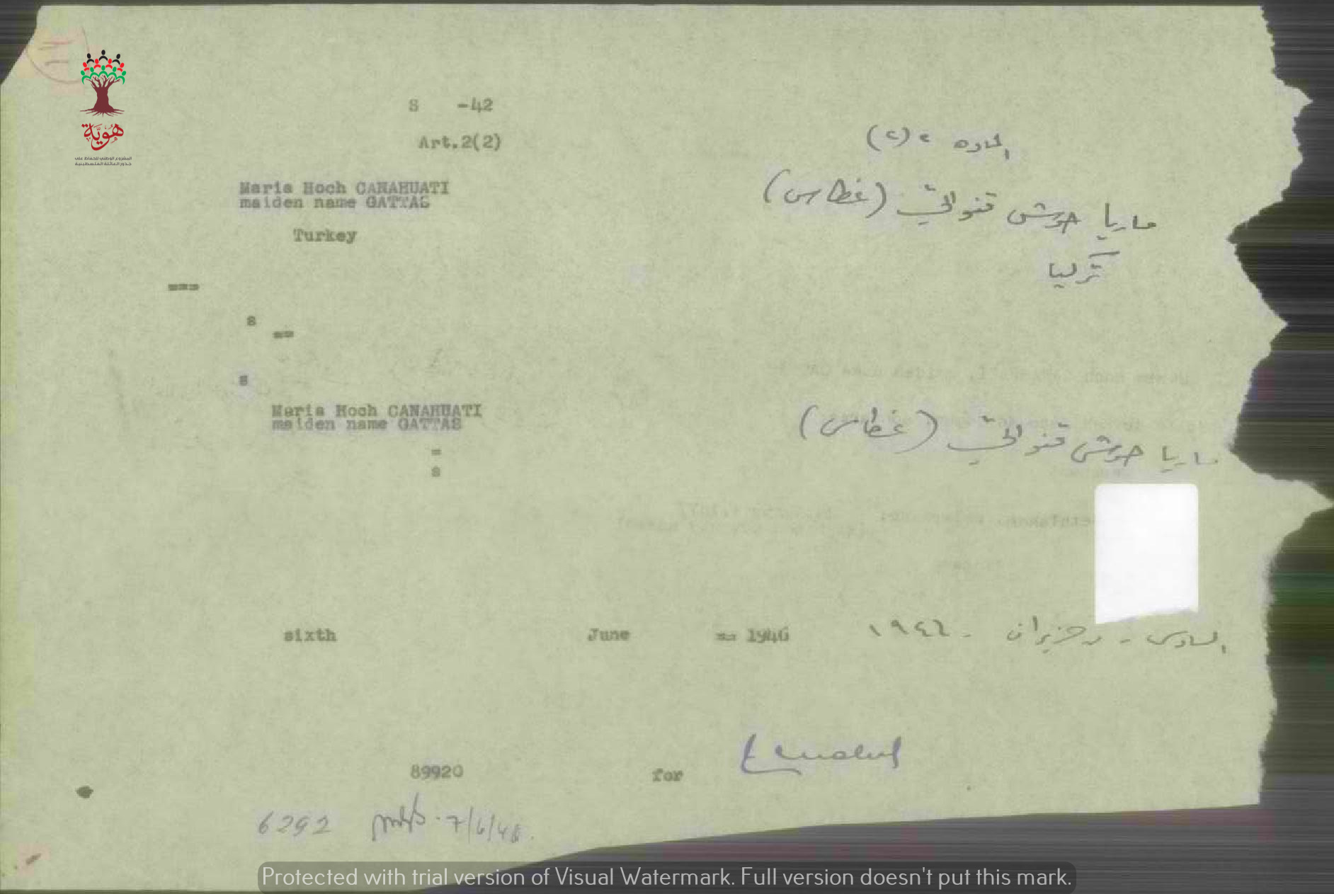 ورقة بيانات ماريا حوش قنواتي المرفقة بطلب الجنسية