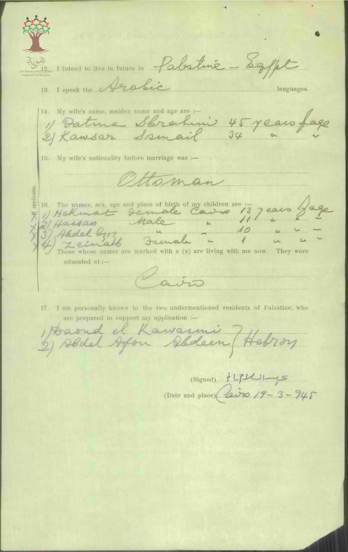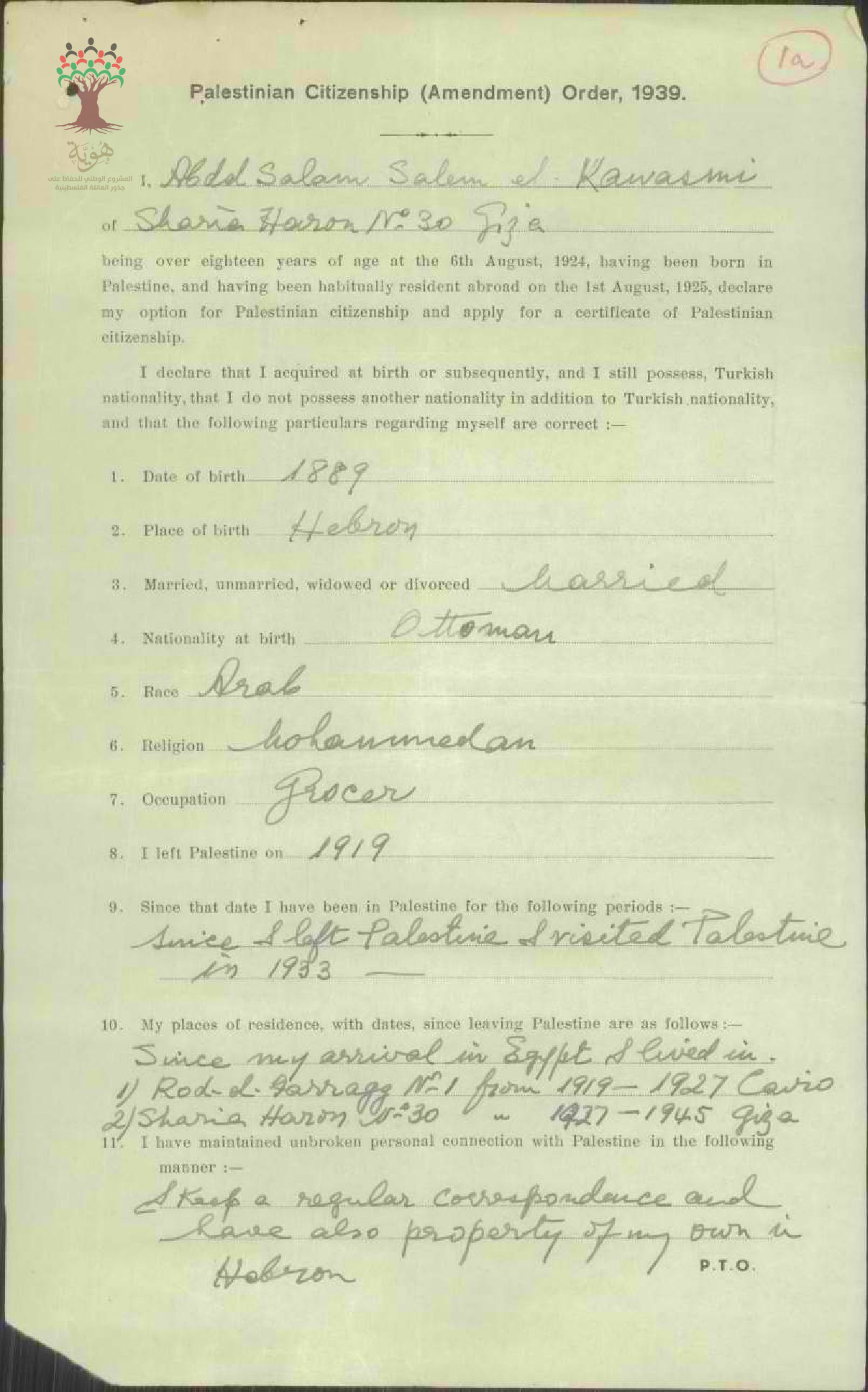 طلب الجنسية الفلسطينية-عبد السلام القواسمي-الخليل