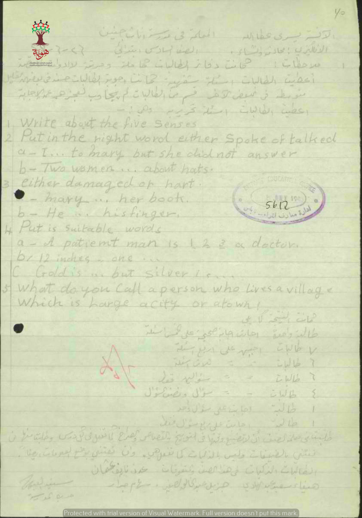 تقرير عن أداء المعلمة يسرى وديع عطال الله في مدرسة اناث جنيسن