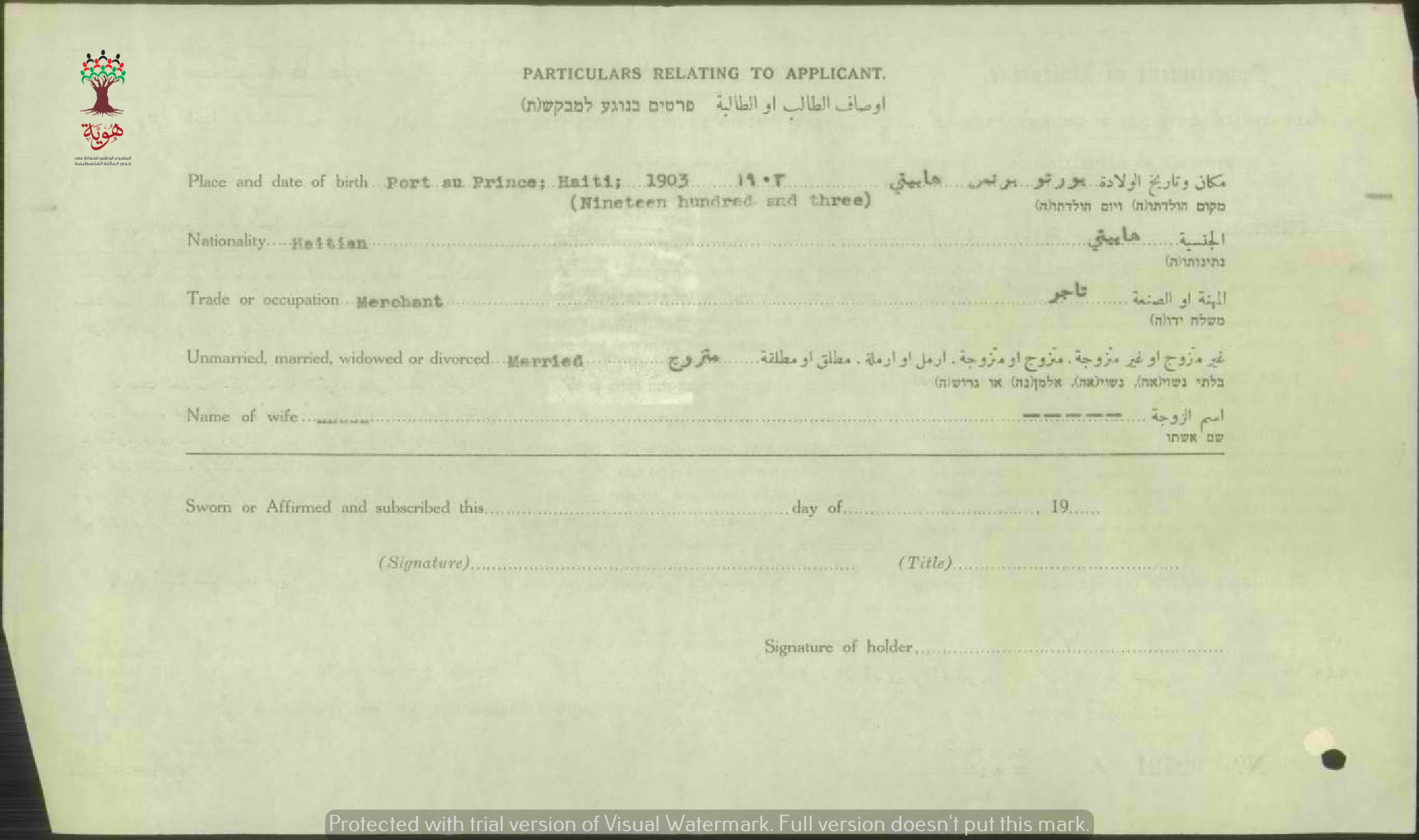 شهادة الجنسية الفلسطينية ل جميل حنضل