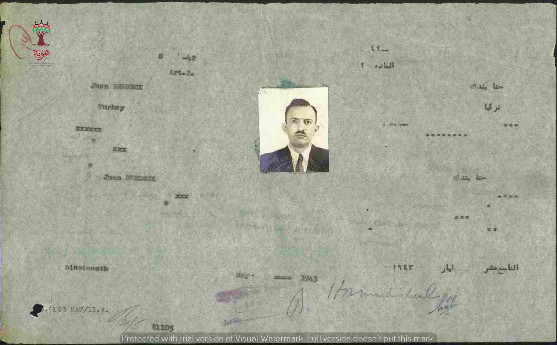 ورقة بيانات حنا البندك المرفقة بطلب الجنسية