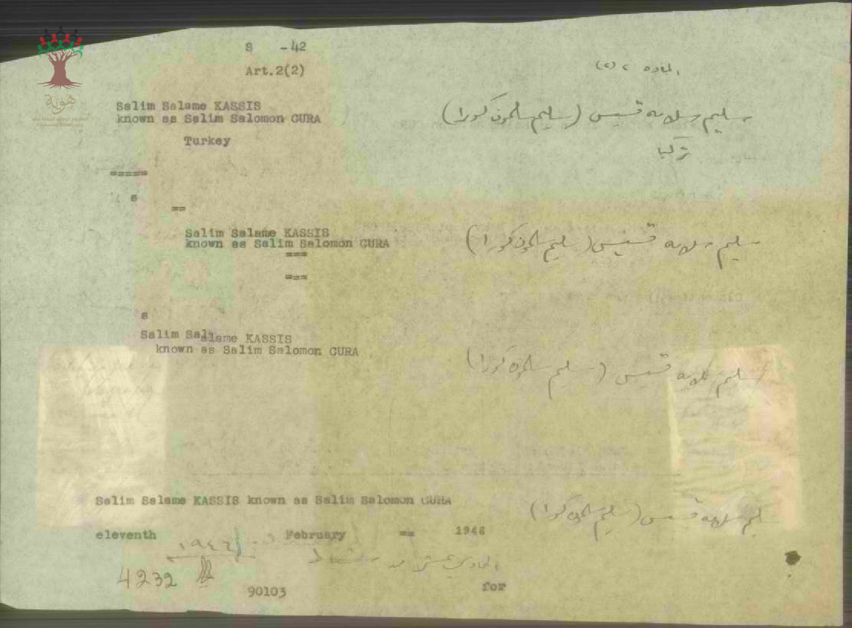 ورقة بيانات سليم القسيس المرفقة بطلب الجنسية