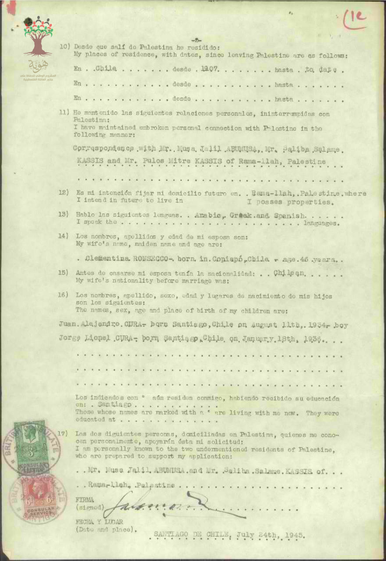 طلب الجنسية الفلسطينية-سليم القسيس-رام الله/تشيلي