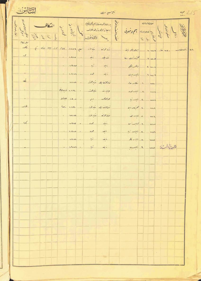 بيانات عائلة آغا - الناصرة / من سجلات النفوس العثمانية
