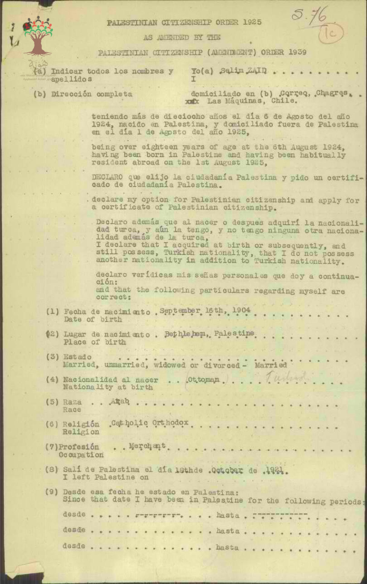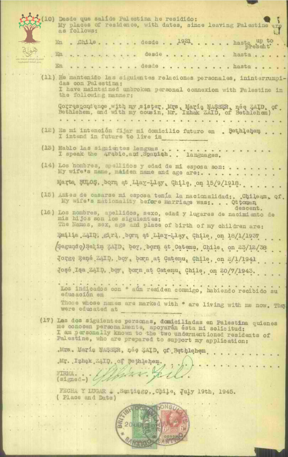 طلب الجنسية الفلسطينية-سليم زايد-بيت لحم/تشيلي