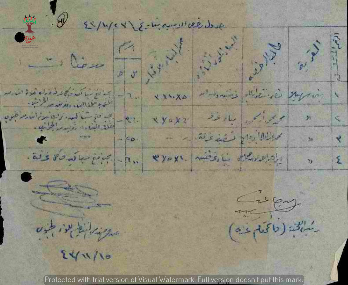 جدول رخص الأبنية في بني سهيلة بتاريخ 27-10-1943