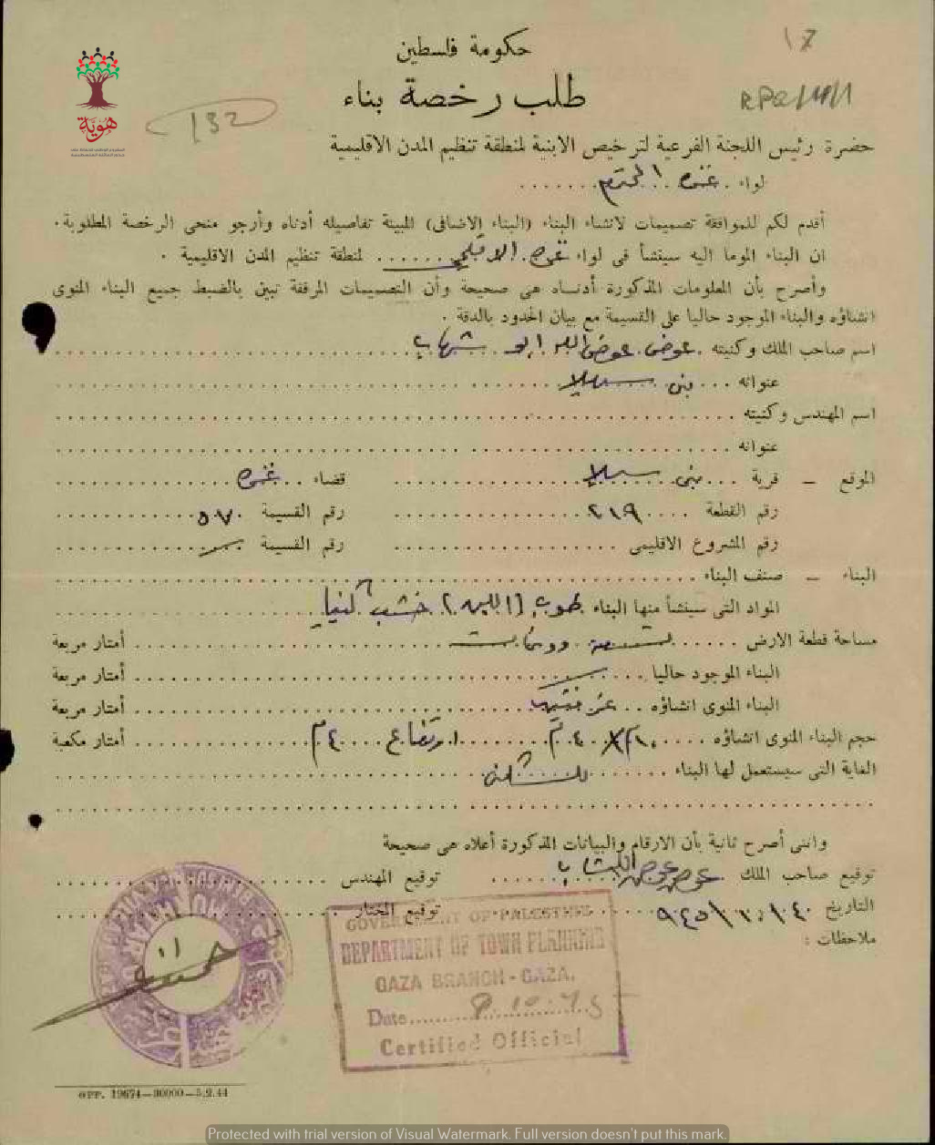 طلب رخصة بناء ل عوض عوض الله أبو شهاب-بني سهيلة