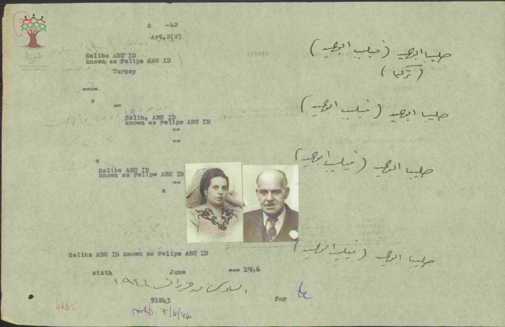 ورقة بيانات صليبا أبو عيد المرفقة بطلب الجنسية وزوجته جوانا سمور