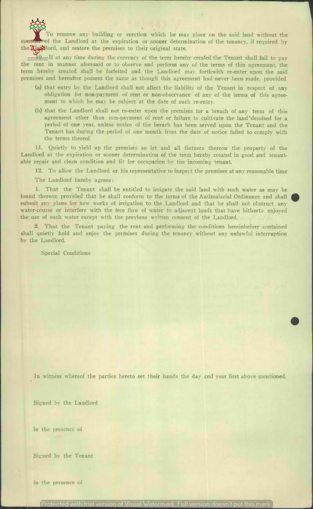 عقد إيجار أرض الوقف الخيري في المنصورة موقع من رشيد صلاحات