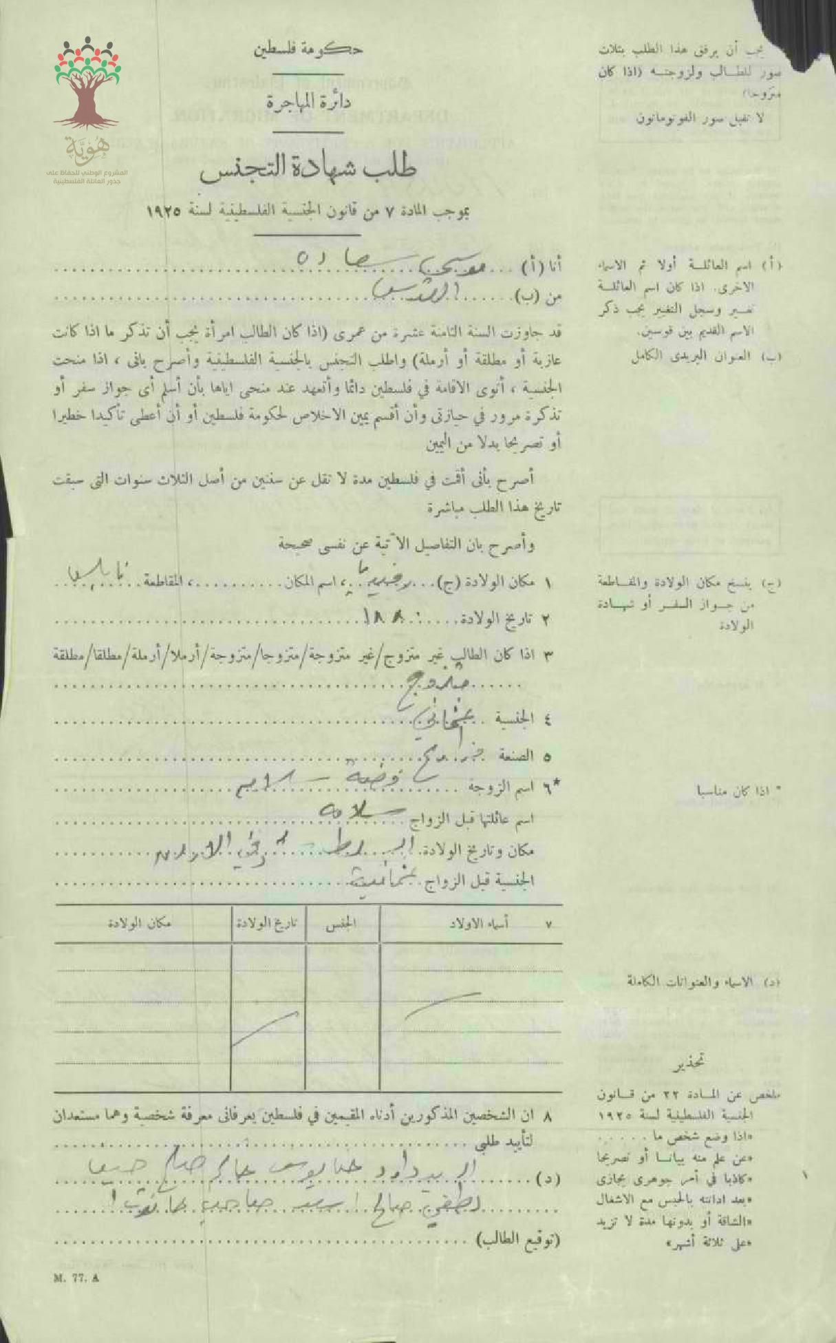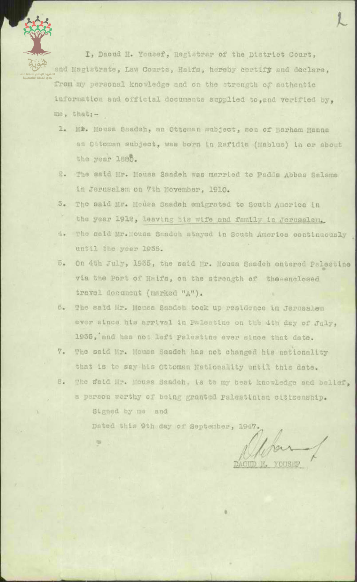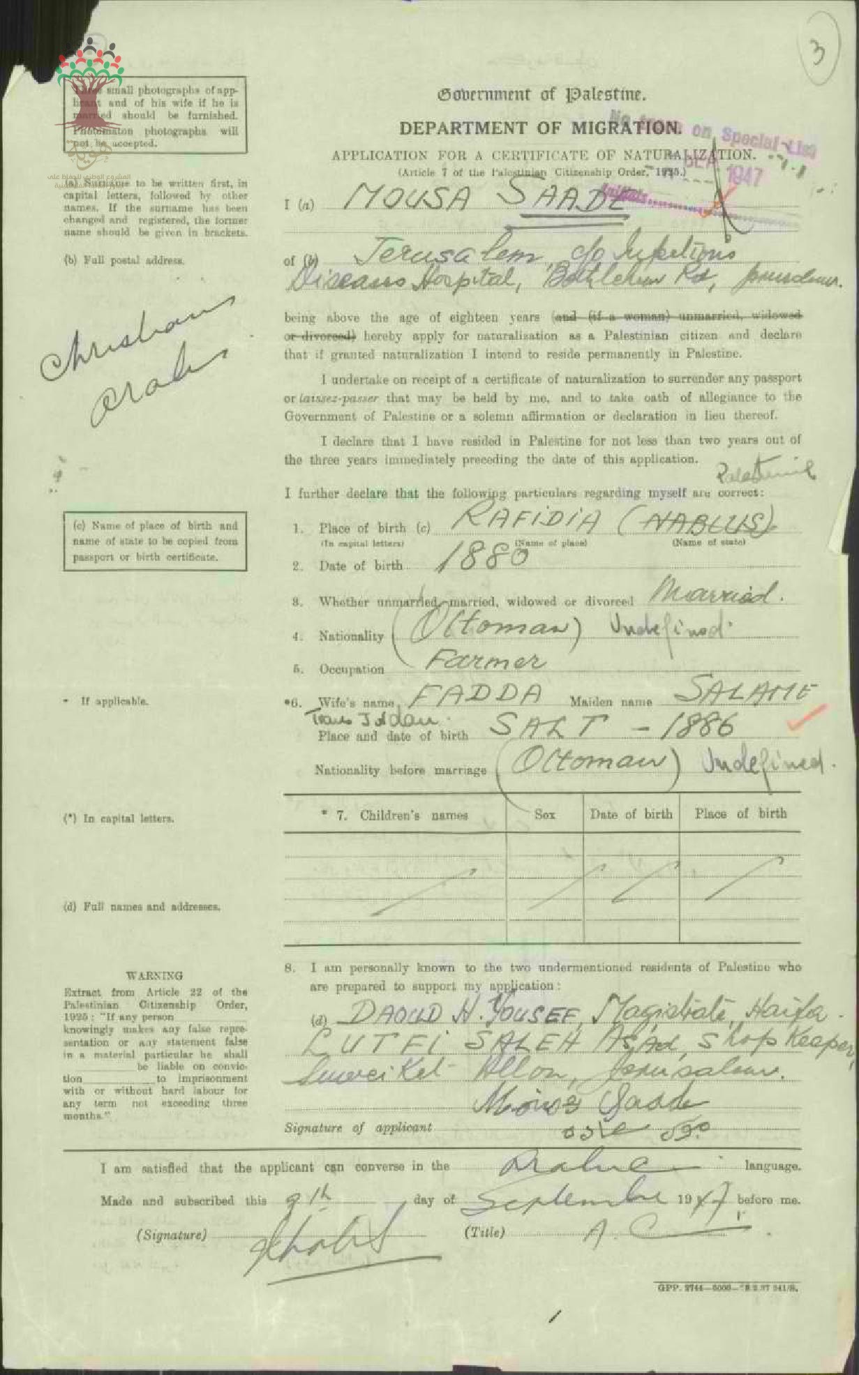 طلب الجنسية الفلسطينية-موسى سعادة-رفيديا/تشيلي