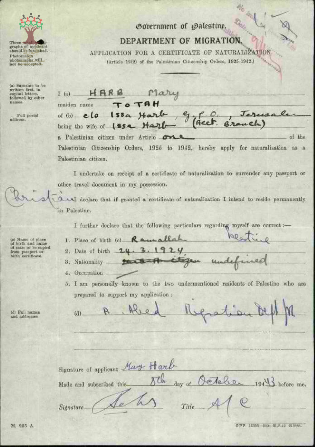 طلب الجنسية الفلسطينية-ماري حرب(طوطح)-رام الله