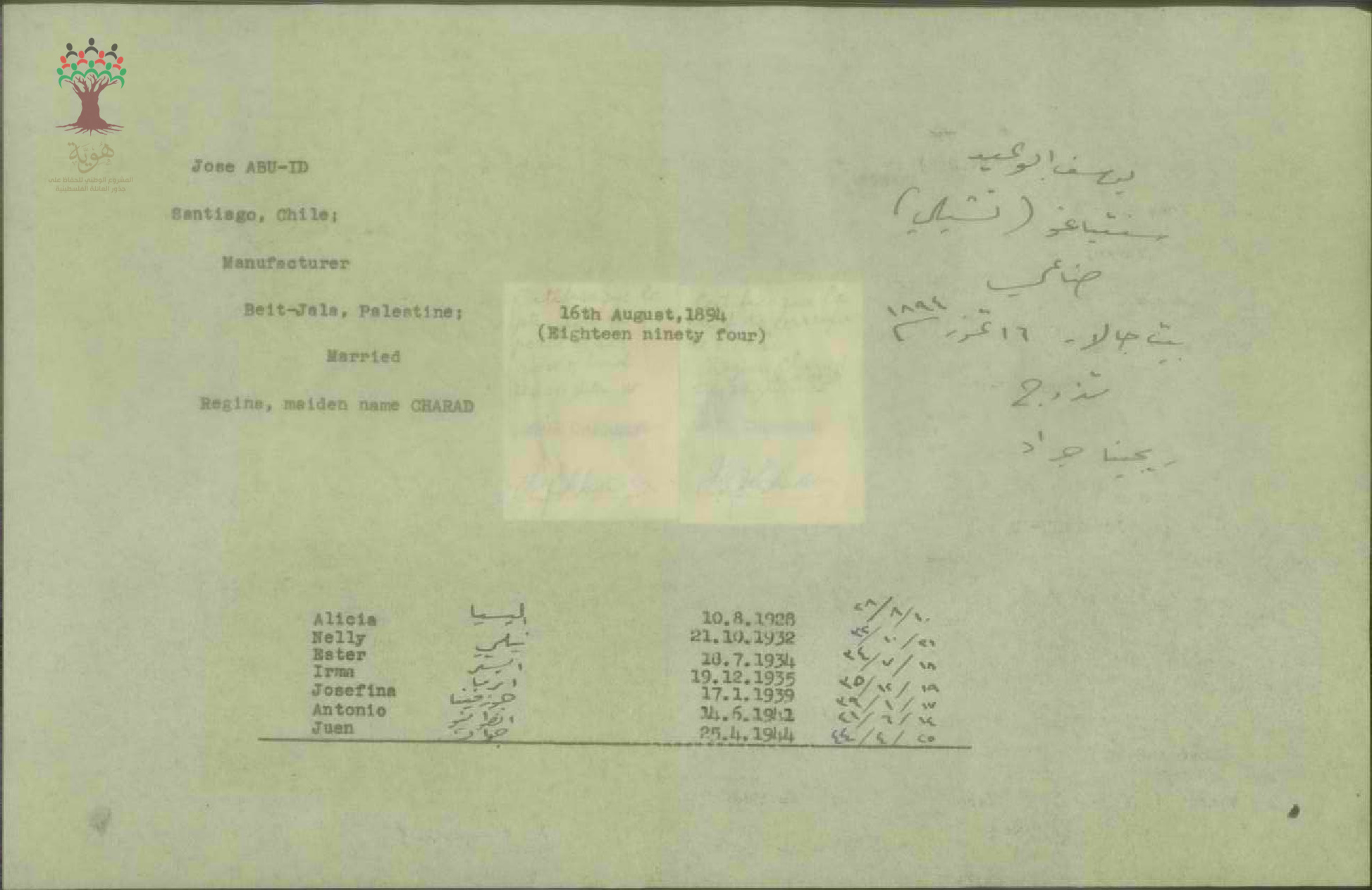 ورقة بيانات يوسف أبو عيد المرفقة بطلب الجنسية