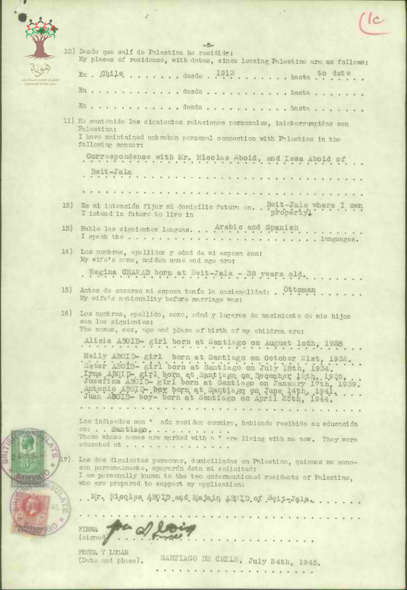 طلب الجنسية الفلسطينية-يوسف أبو عيد-بيت جالا/تشيلي