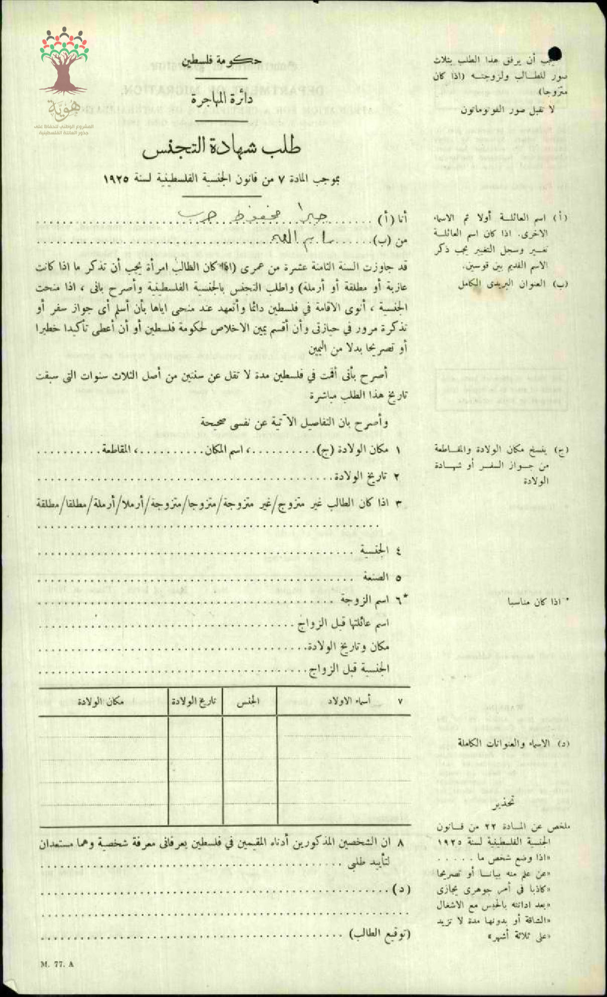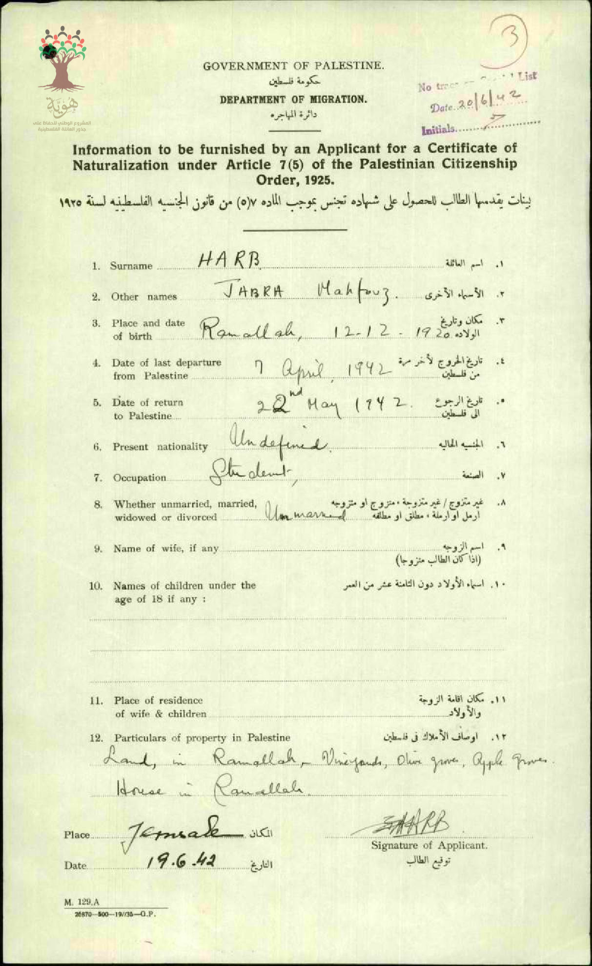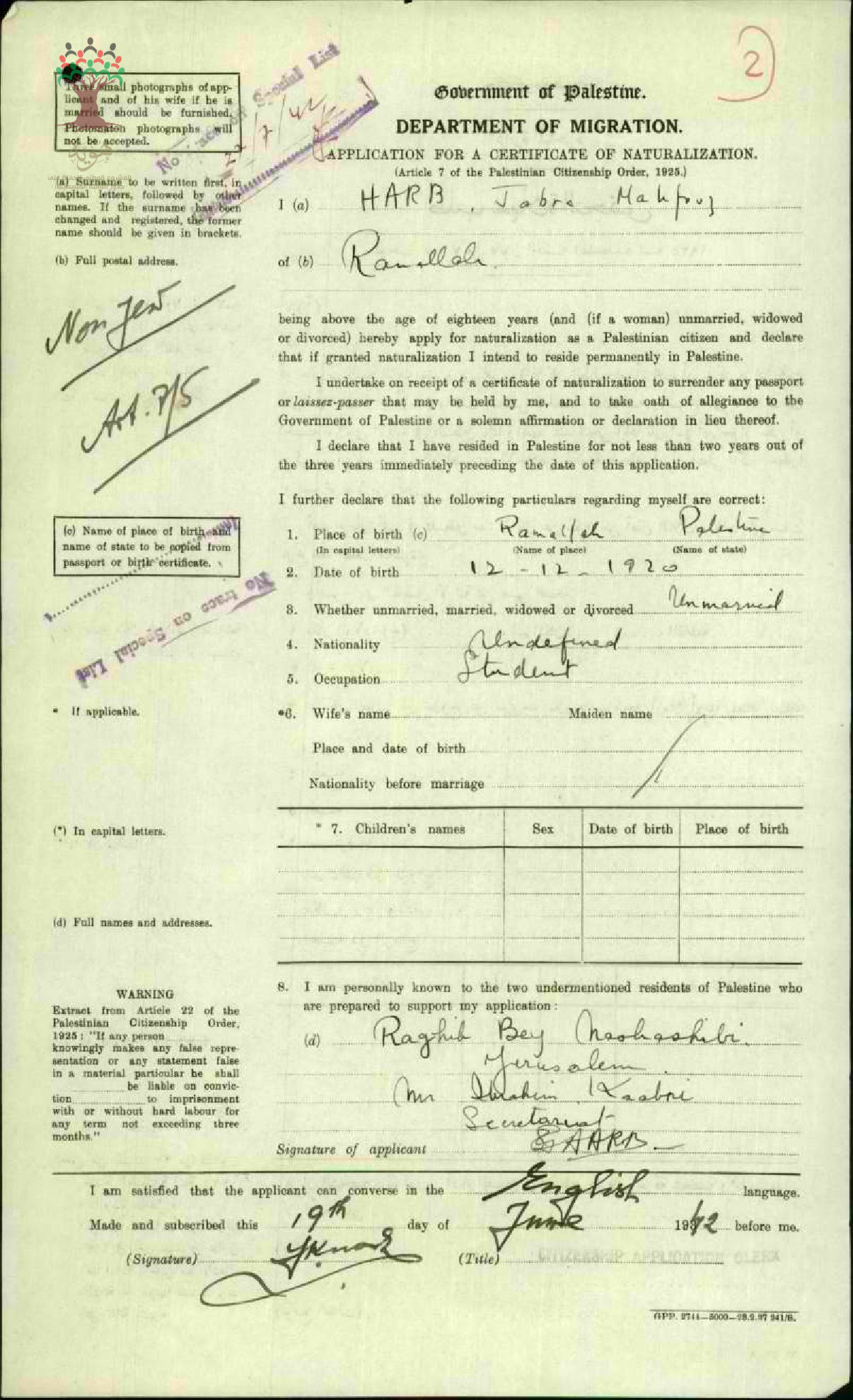 طلب الجنسية الفلسطينية-جبرا حرب-رام الله