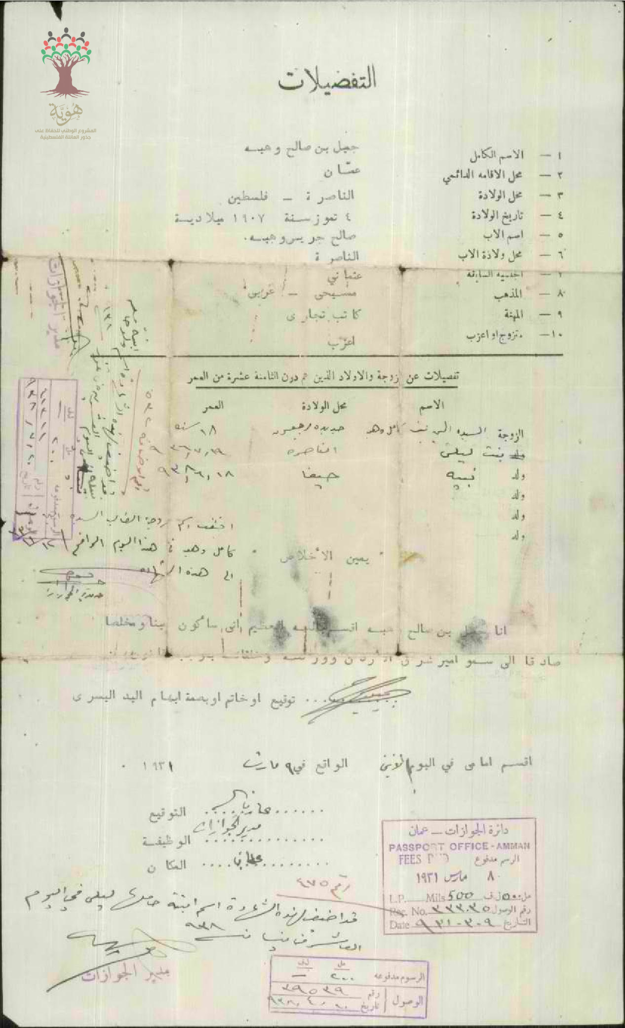 ورقة تفصيلا عن جميل صالح وهبة وعائلته