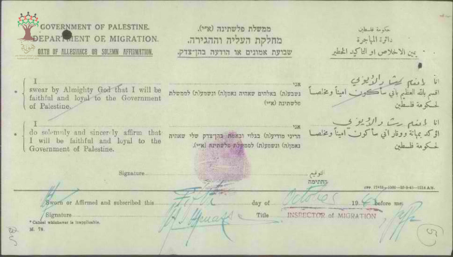 انعام الأيوبي(الرملي)توقع على(يمين الاخلاص)للحصول على الجنسية الفلسطينية