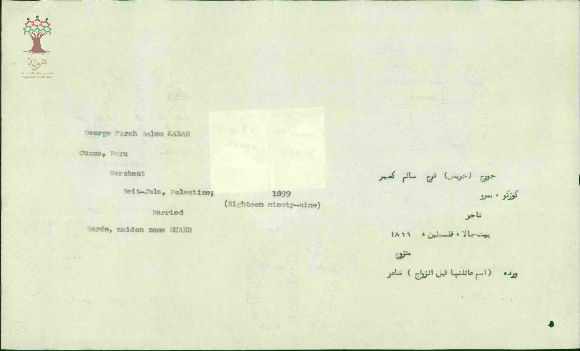 ورقة بيانات جورج قعبر المرفقة بطلب الجنسية وزوجته وردة شاعر