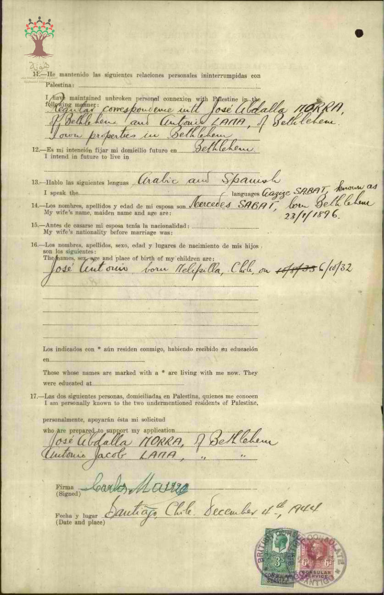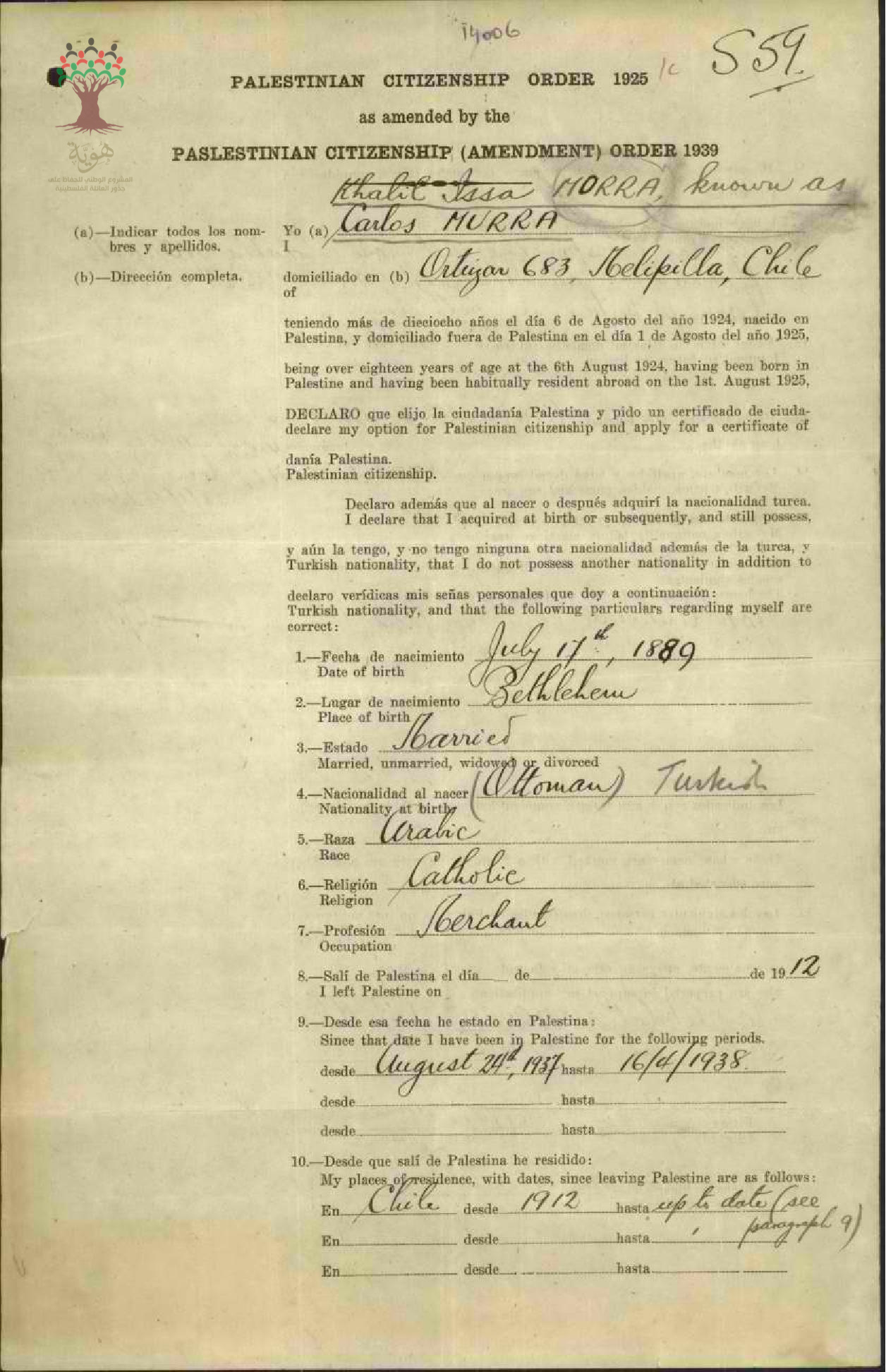 طلب الجنسية الفلسطينية-خليل عيسى مرة-بيت لحم/تشيلي