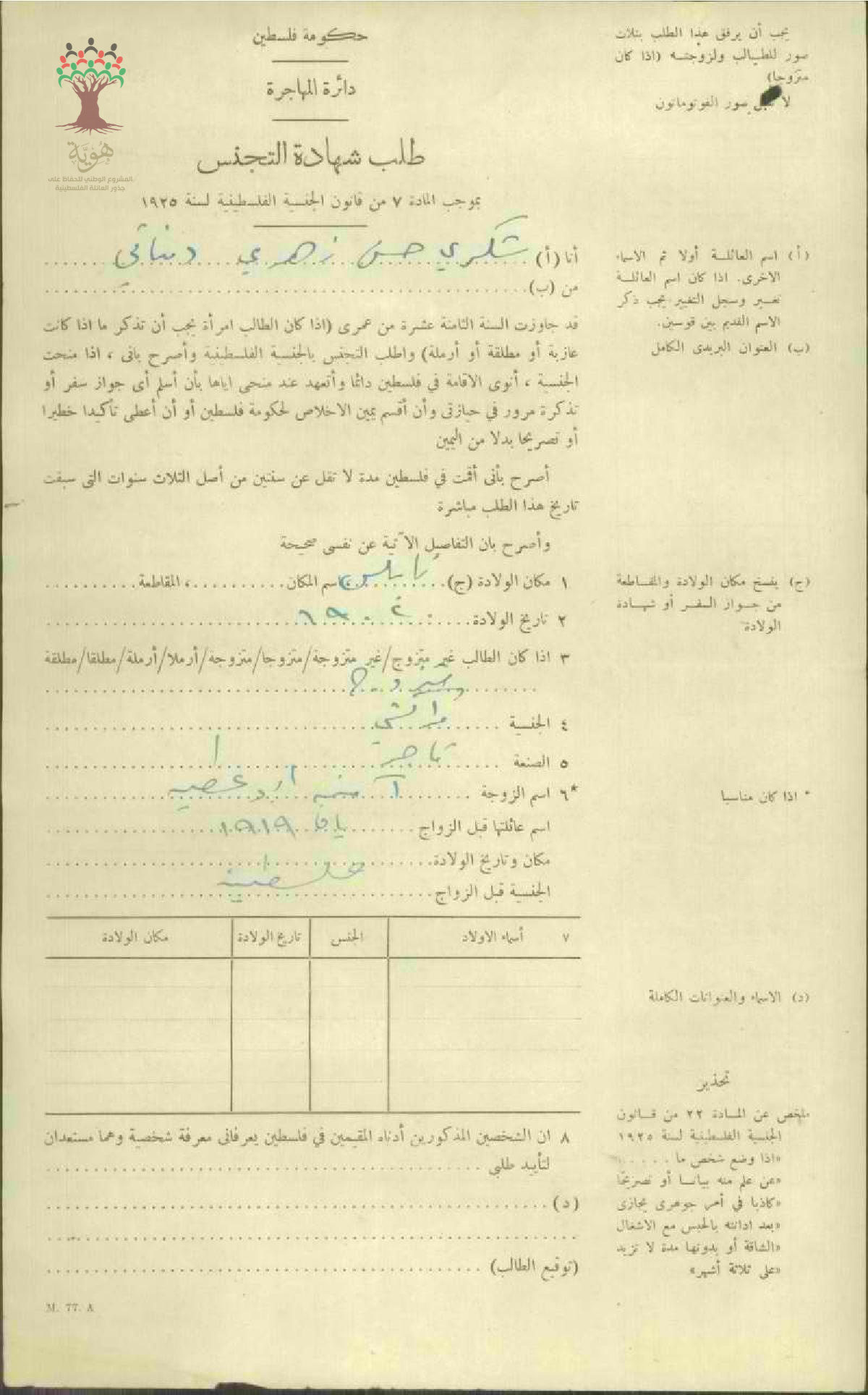 طلب الجنسية الفلسطينية-شكري دمناتي-نابلس