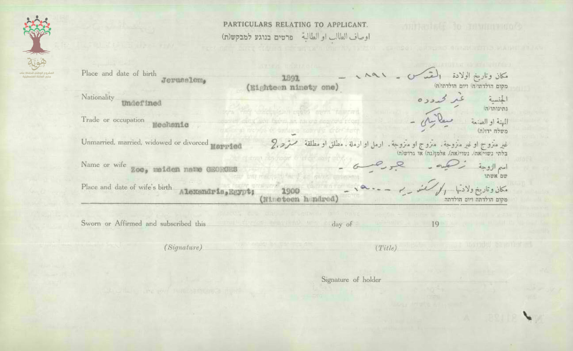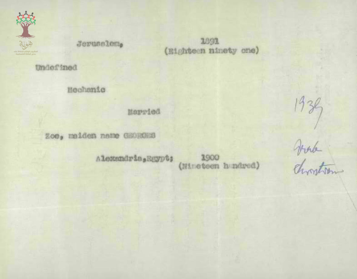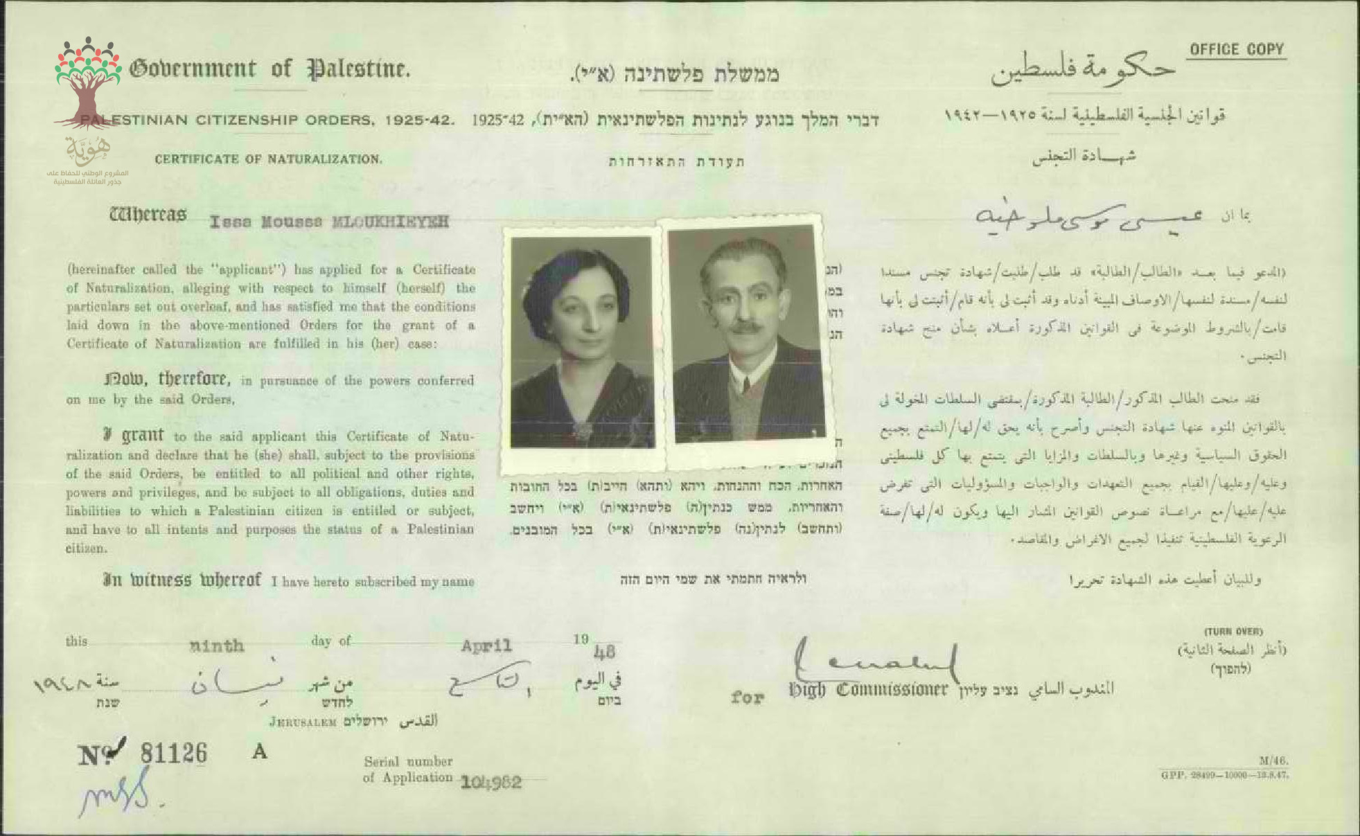 شهادة الجنسية الفلسطينية ل عيسى موسى ملوخية