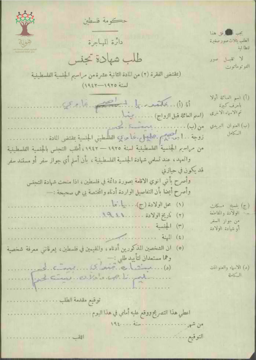 طلب الجنسية الفلسطينية-فكتوريا البنا-بيت لحم