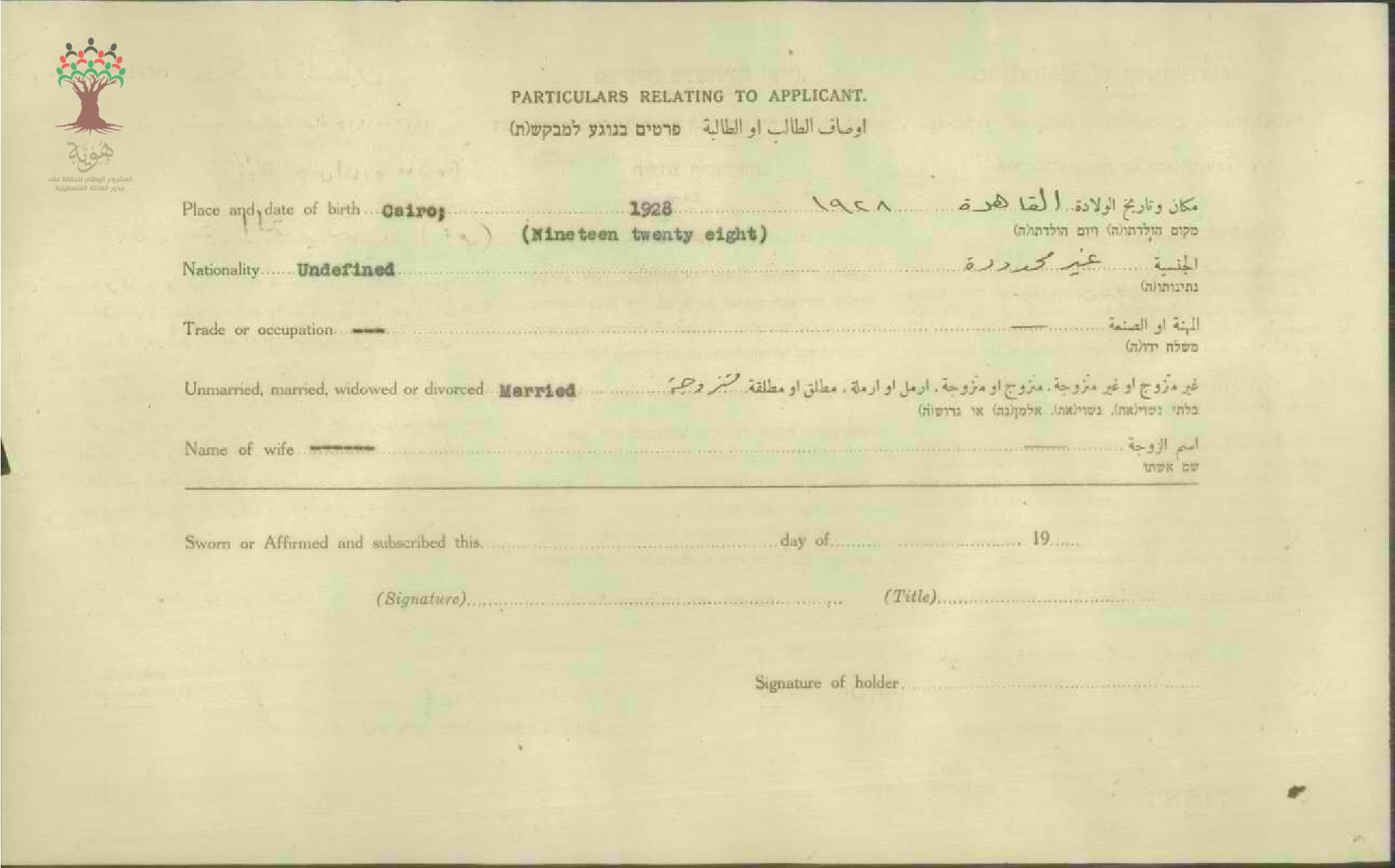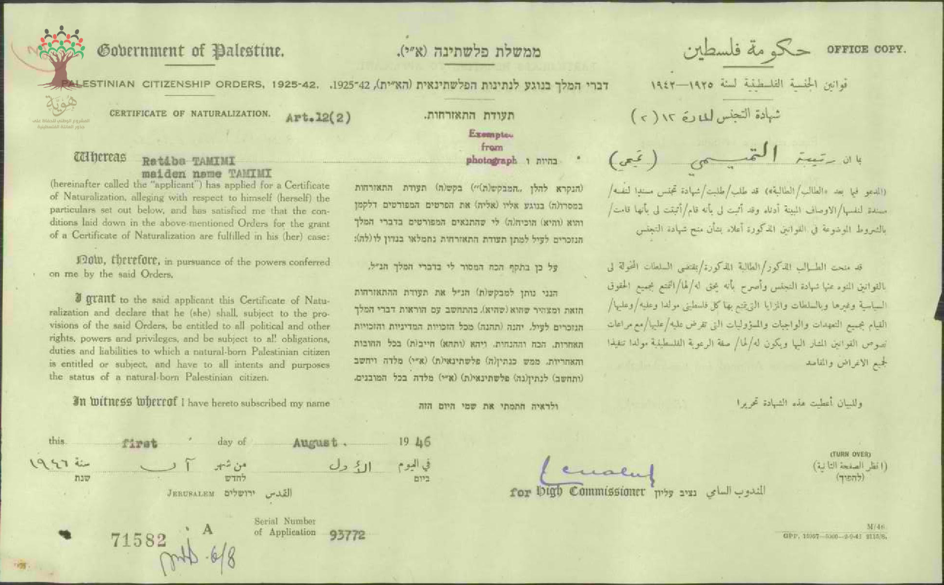 شهادة الجنسية الفلسطينية ل رتيبة التميمي