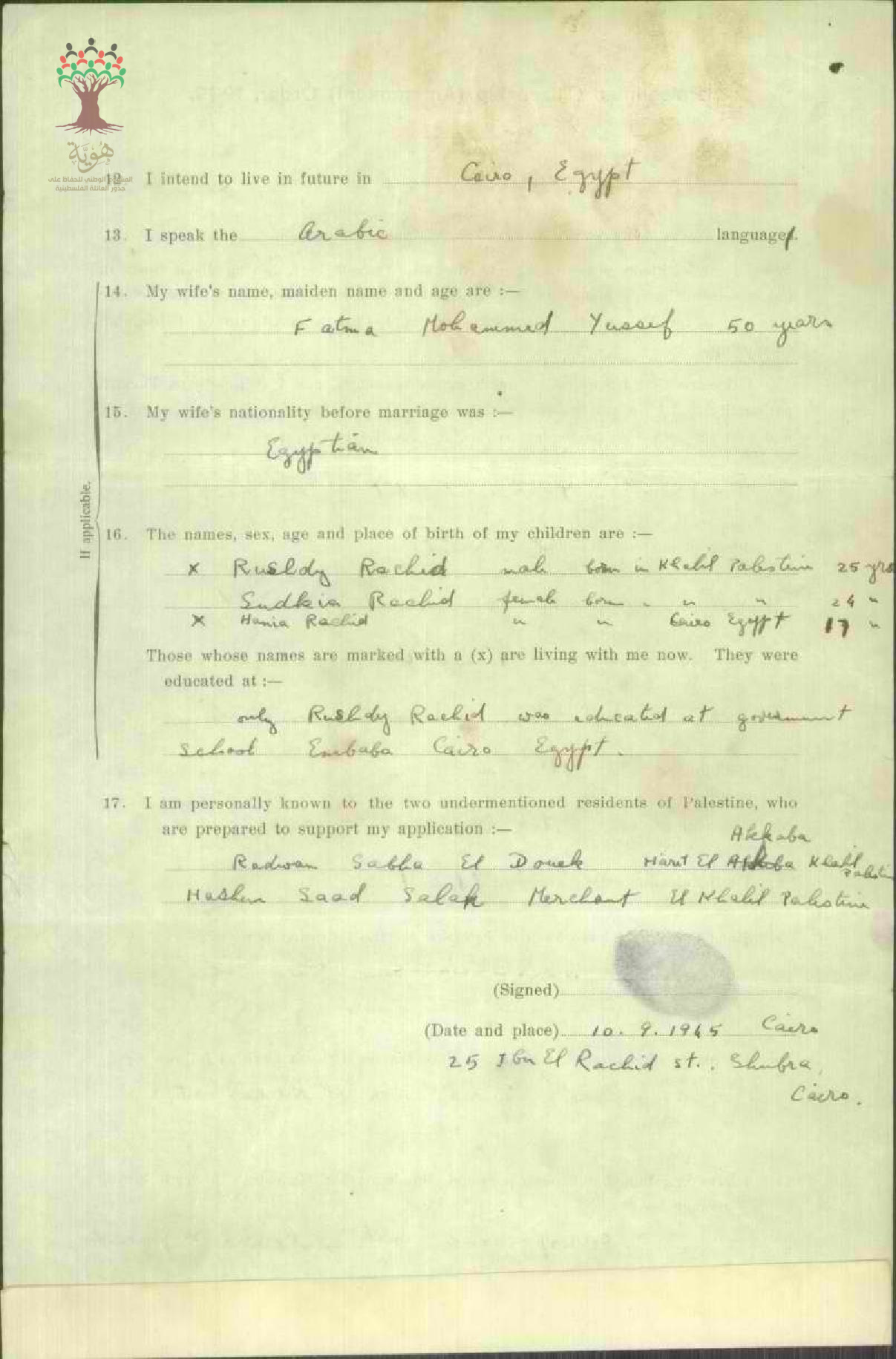 طلب الجنسية الفلسطينية-رشيد صلاح/الخليل