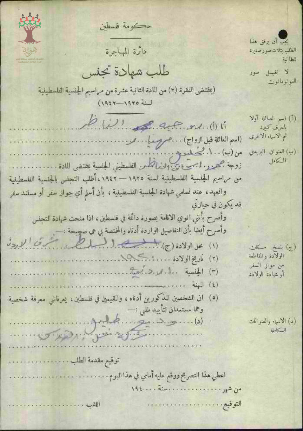 طلب الجنسية الفلسطينية-روحية الناظر/الخليل